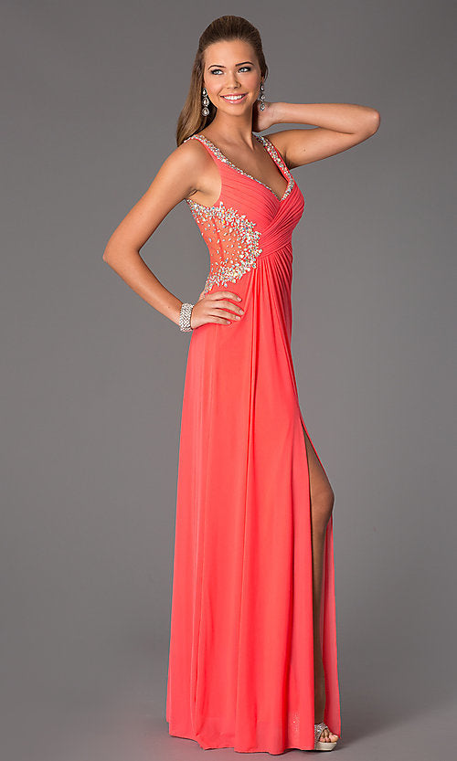 Jovani JVN94375 Size 8 sheer prom dress V neck slit Backless Watermelon Gown