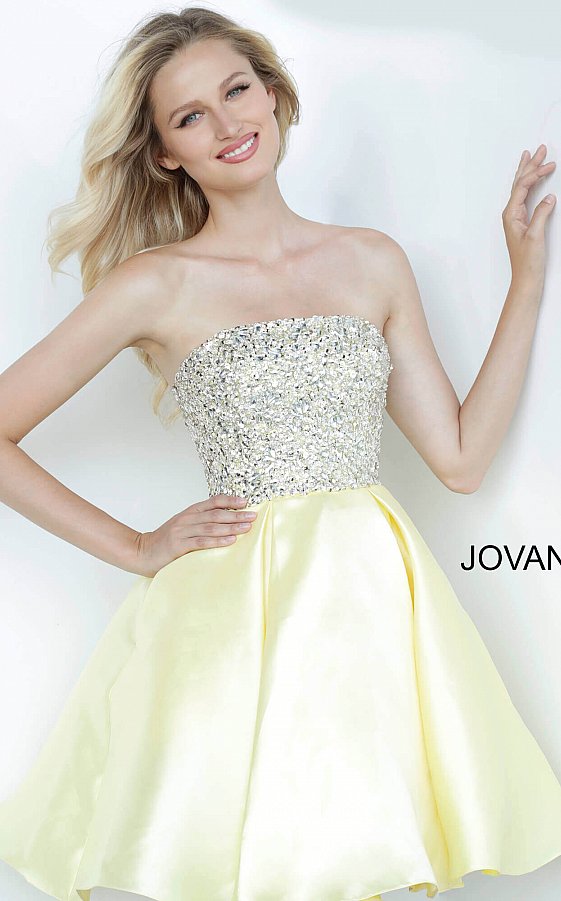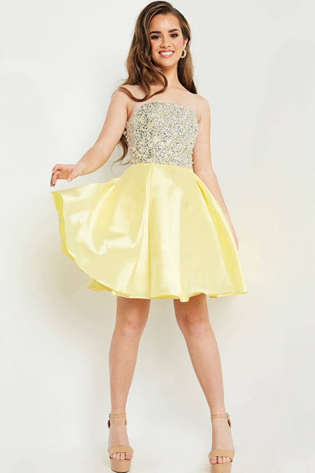 Jovani Kids k00722 is a short Girls Party Dress, Kids Pageant Gown & Pre Teen Formal Evening Wear gown. This Gorgeous Girls Fit & Flare Formal Cocktail Dress Features a strapless straight neckline with a fitted Crystal Embellished Bodice for a Stunning Glam Effect. Flared Short skirt is Pleated.