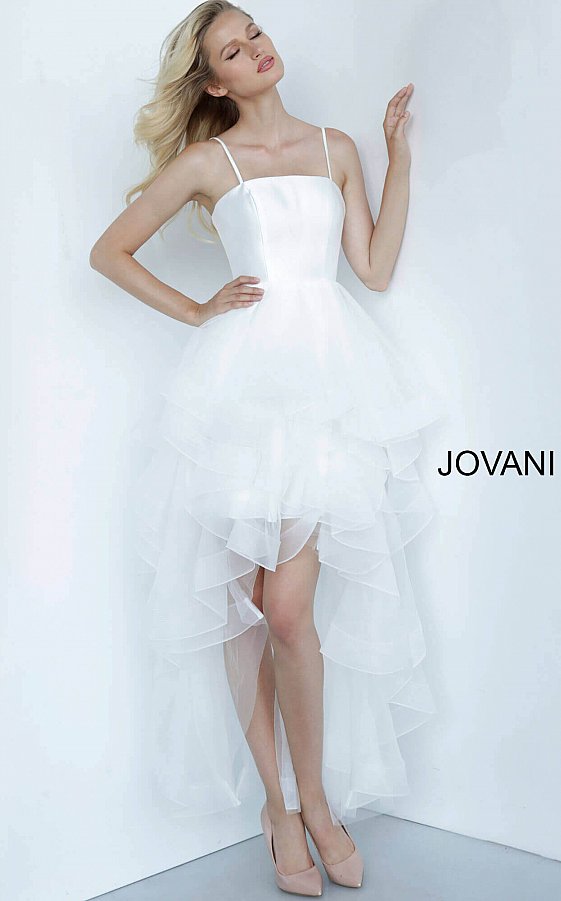 Jovani Kids k66708 is a Girls Party Dress, Kids Pageant Gown & Pre Teen Formal Evening Wear gown. This Off White Girls Gown Features a straight neckline with spaghetti straps. Layered Ruffle Tulle High Low Skirt. Great Flower Girls Dress!