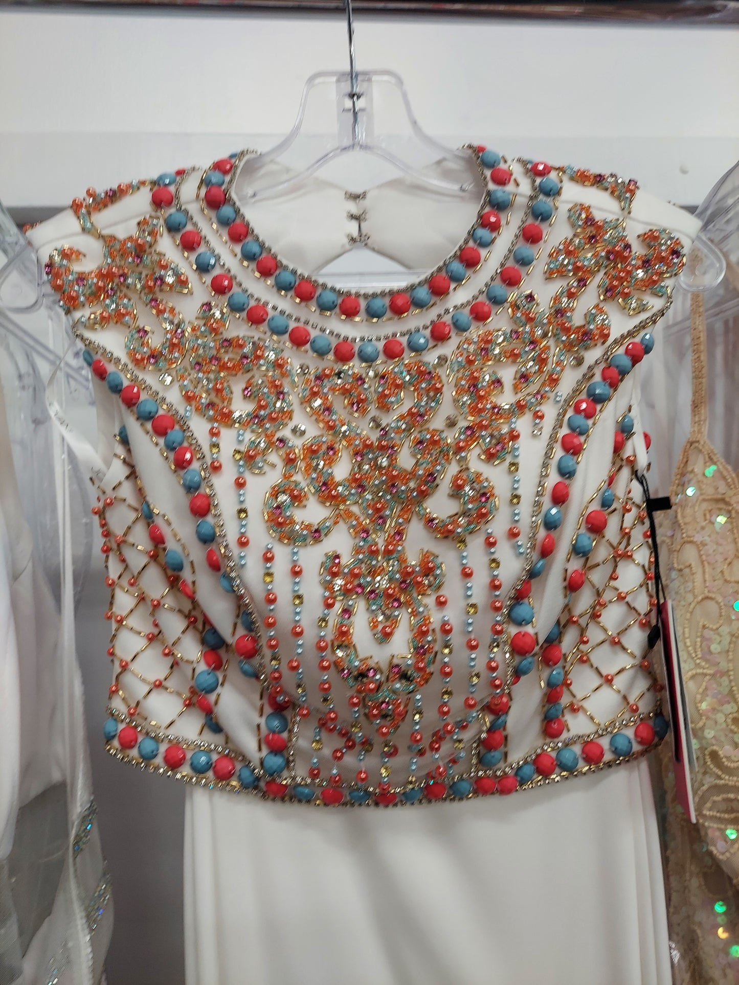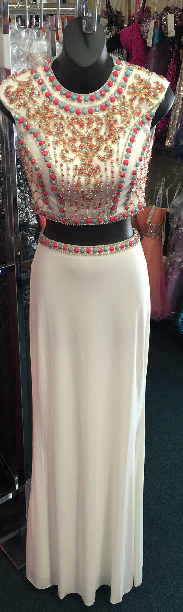 Jovani JVN34015 Size 0 White Two Piece Beaded Prom Dress High Neck Formal Gown