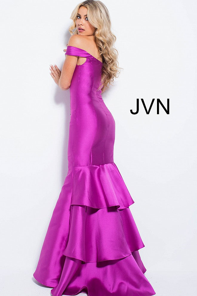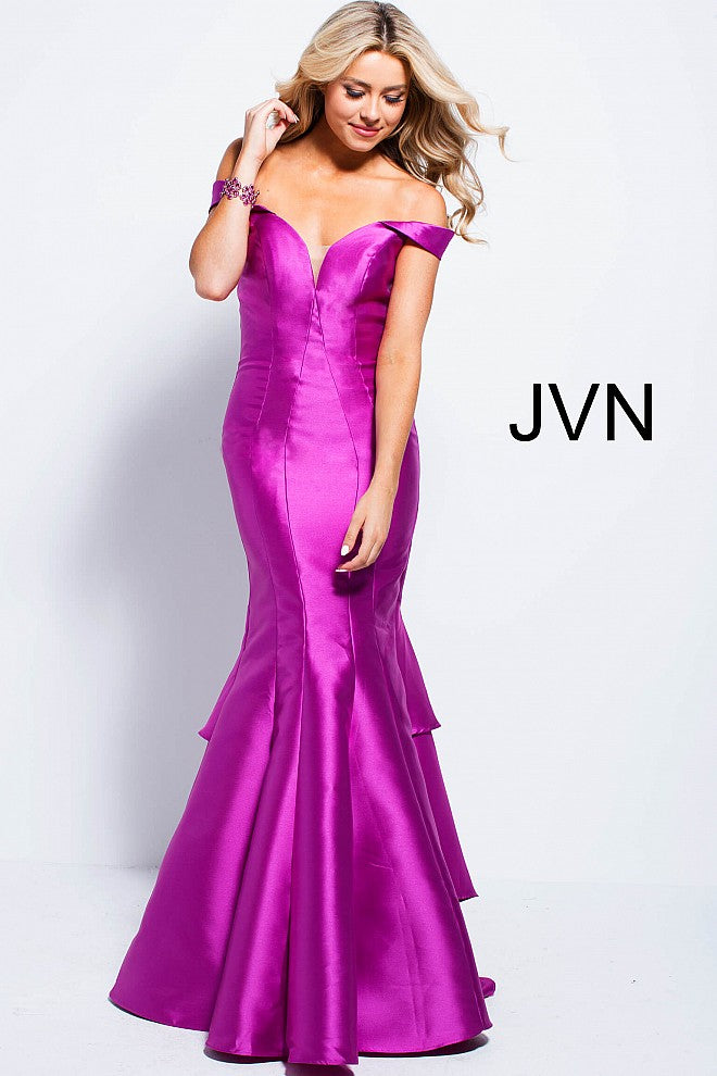 Jovani JVN 59261 off the shoulder straps mermaid prom dress available in Violet
