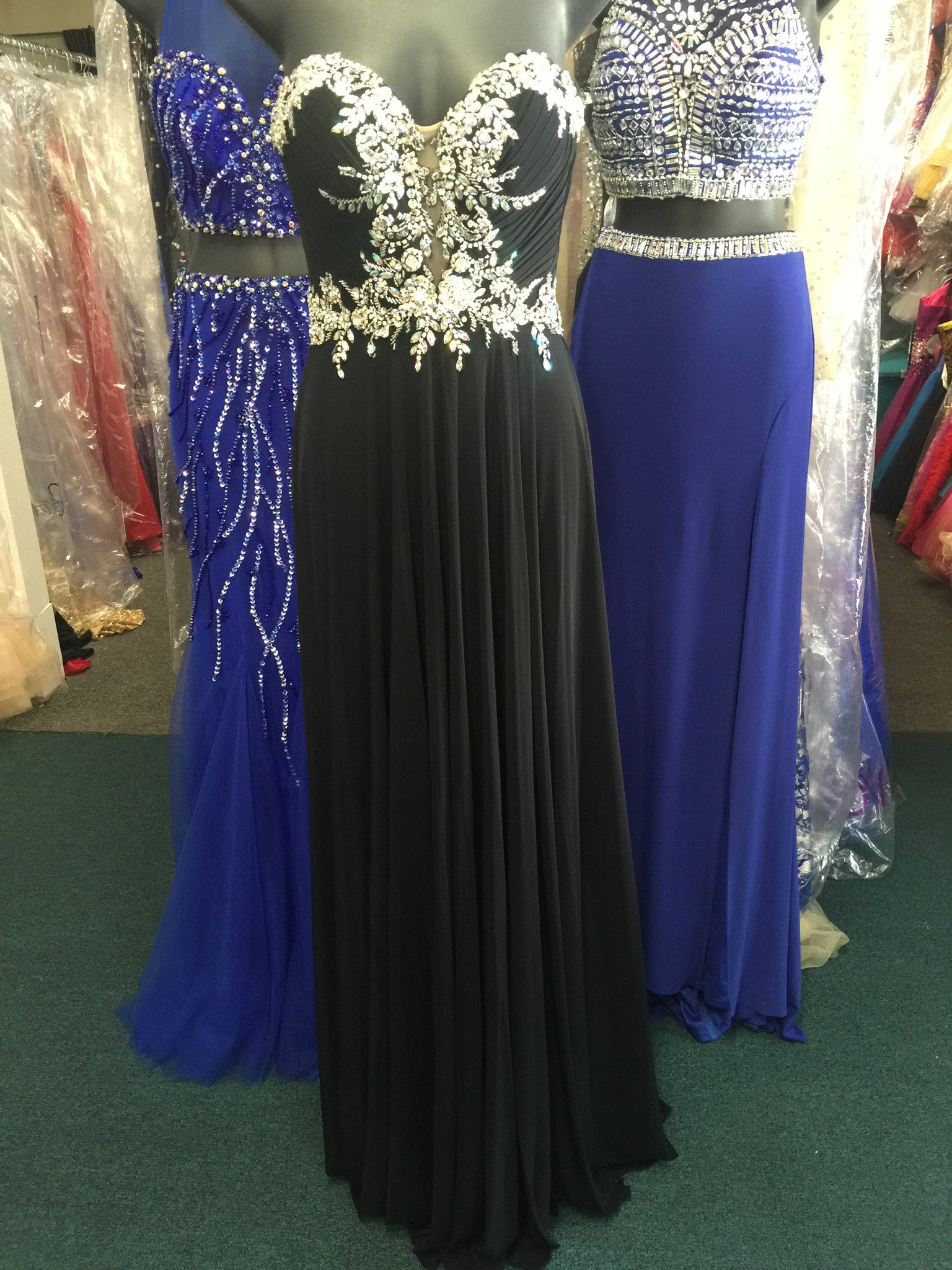 Jovani JVN33470 size 0 Black prom dress pageant gown long chiffon Plunging Neckline