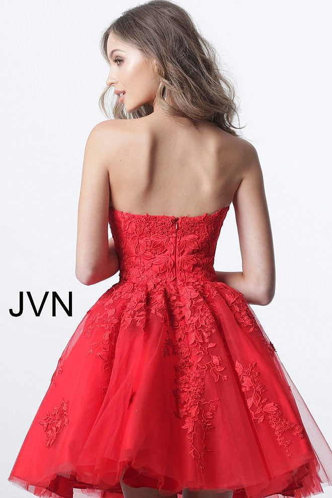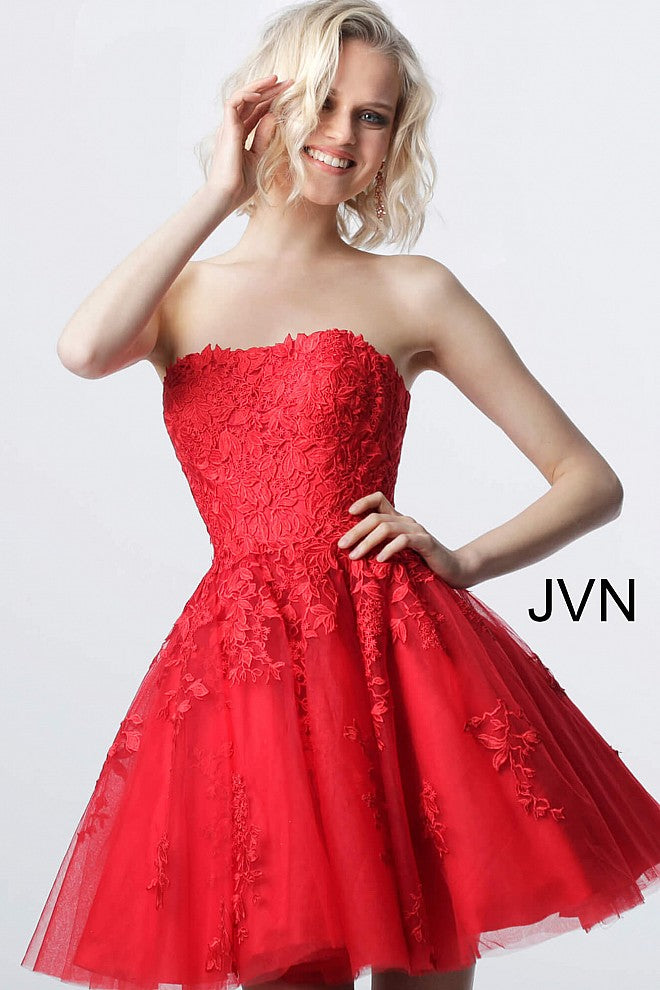 Jovani 1830 Short lace homecoming dress tulle skirt strapless Gown