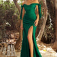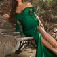 Ladivine CD943C Evening Bridesmaids Dress Curvy Sizes Off the Shoulder Tie Straps Fitted Ruched Slit