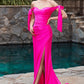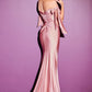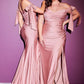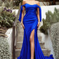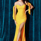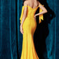 This Ladivine CD943C Evening Bridesmaids Dress is cut from a spandex stretch jersey. This dress is artfully tucked and ruched to accentuate your curves and features alluring off the shoulder straps framed by elongated ties and a floor length mermaid hem defined by a dramatic front slit so you can work the room with ease.