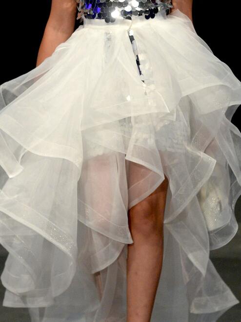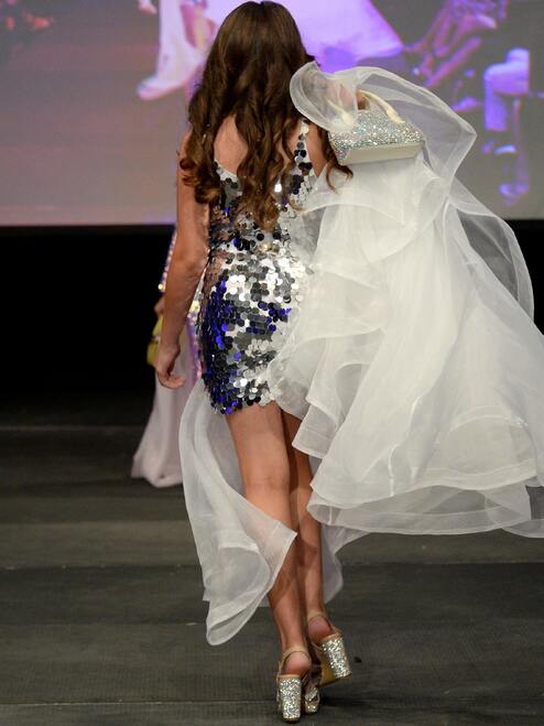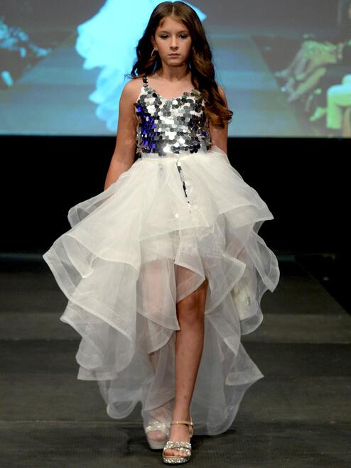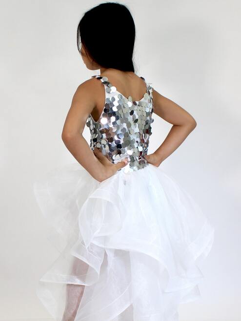 Marc Defang 5002S High Low Sequin Girls Pageant Romper Layered Detachable Overskirt
