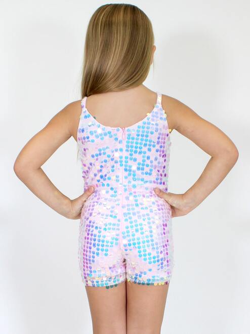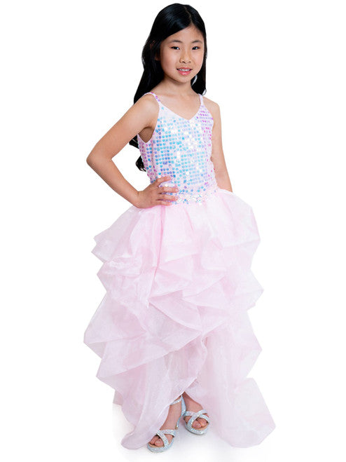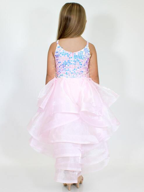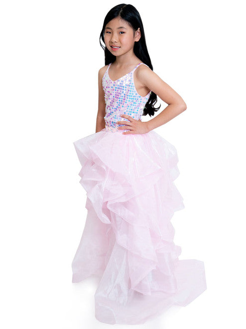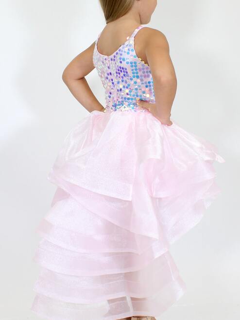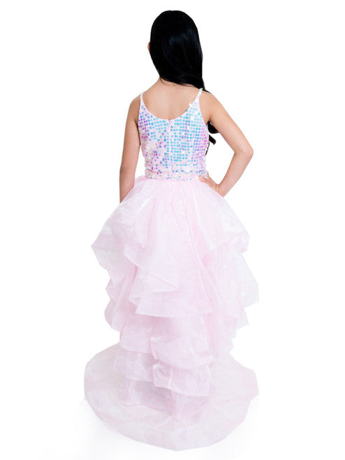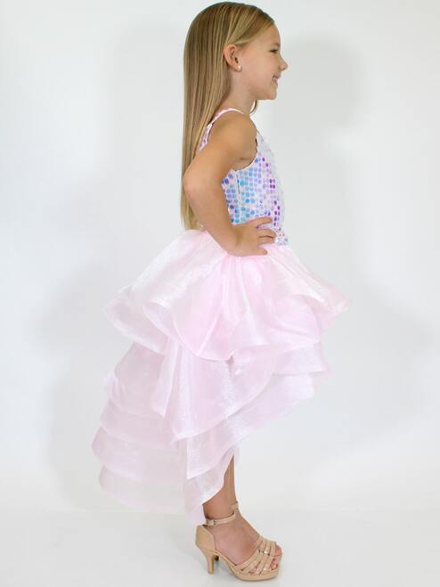 Marc Defang 5002 Pink High Low Sequin Girls Pageant Romper Layered Detachable Overskirt