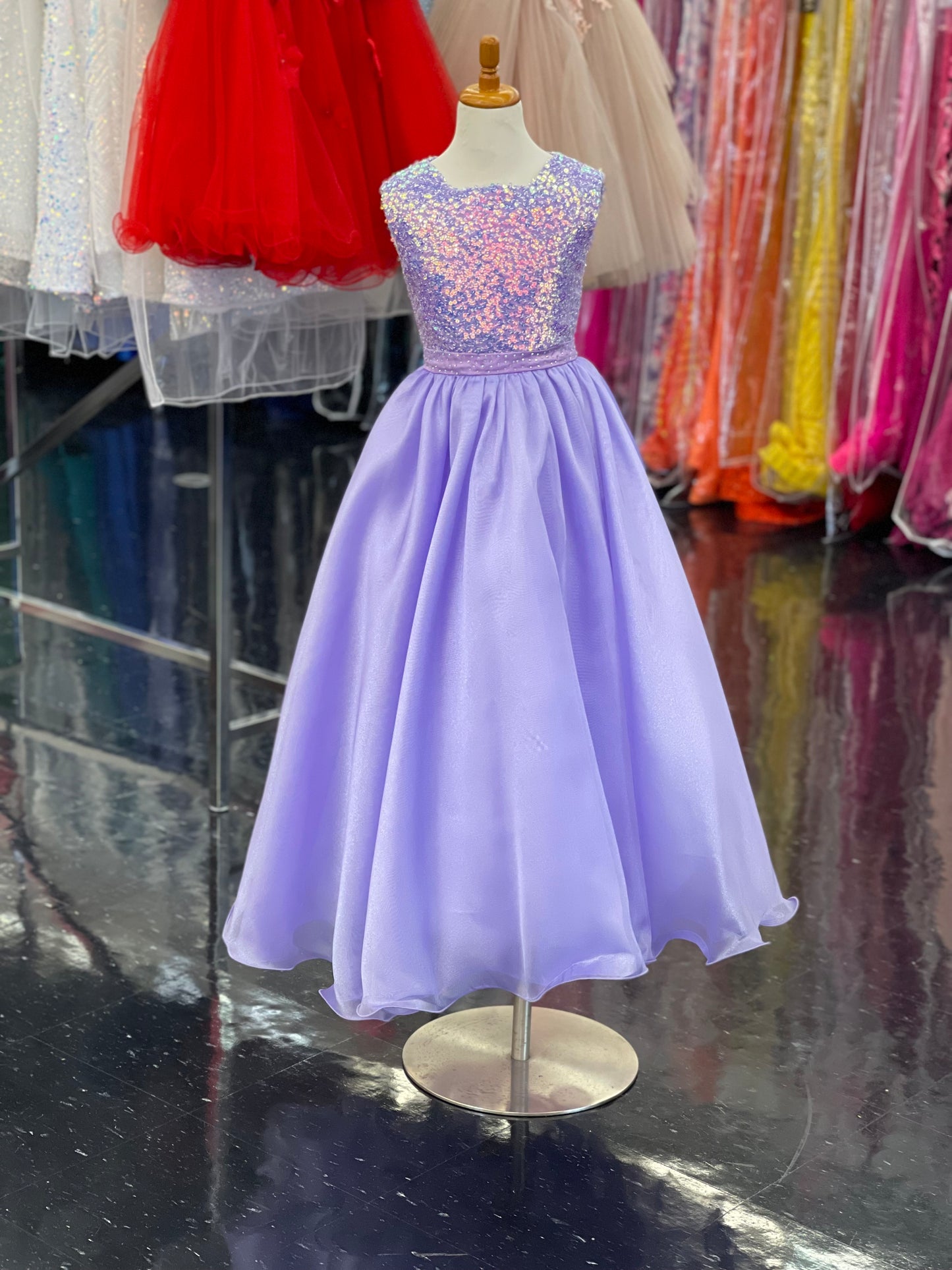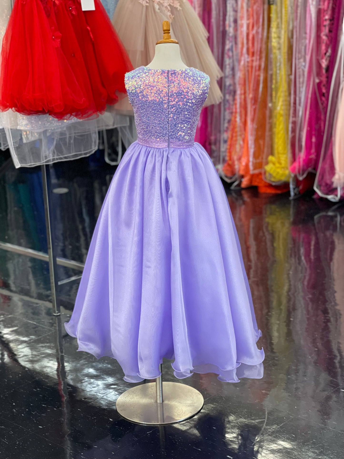 Marc Defang 5009 size 4 Lilac Girls Pageant Dress Long A Line Sequins Organza Long Skirt