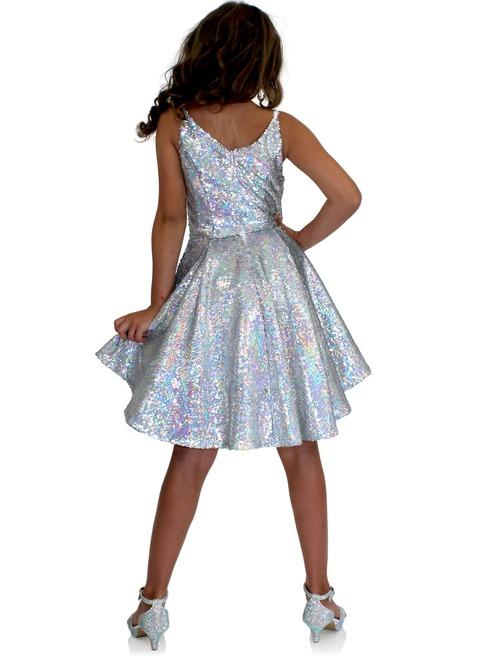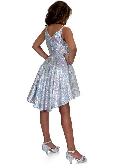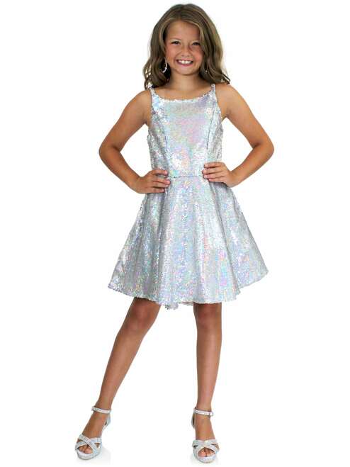 Marc Defang 5013 Size 8 Silver Short Sequin Fun Fashion Girls Pageant Dress Interview
