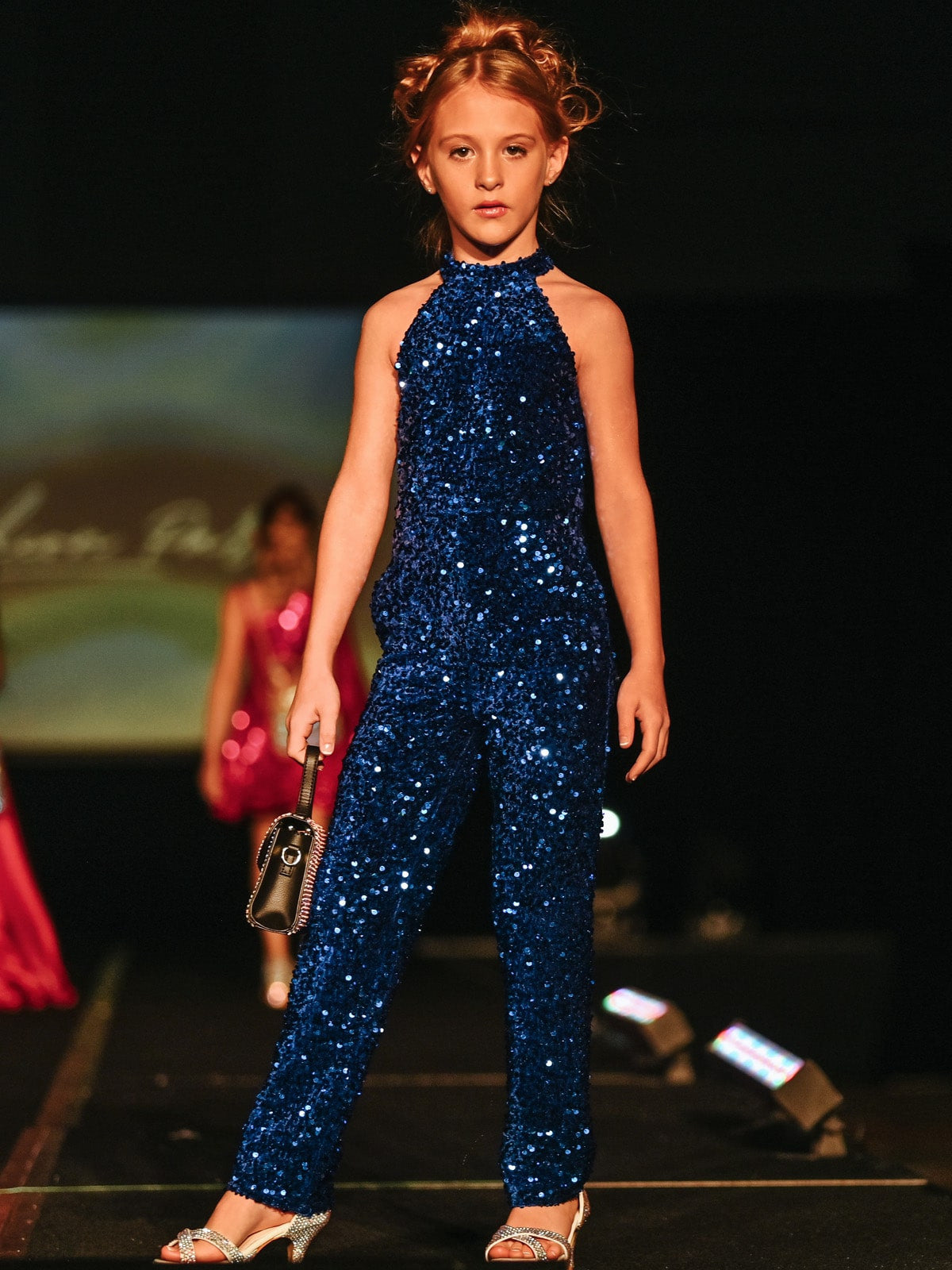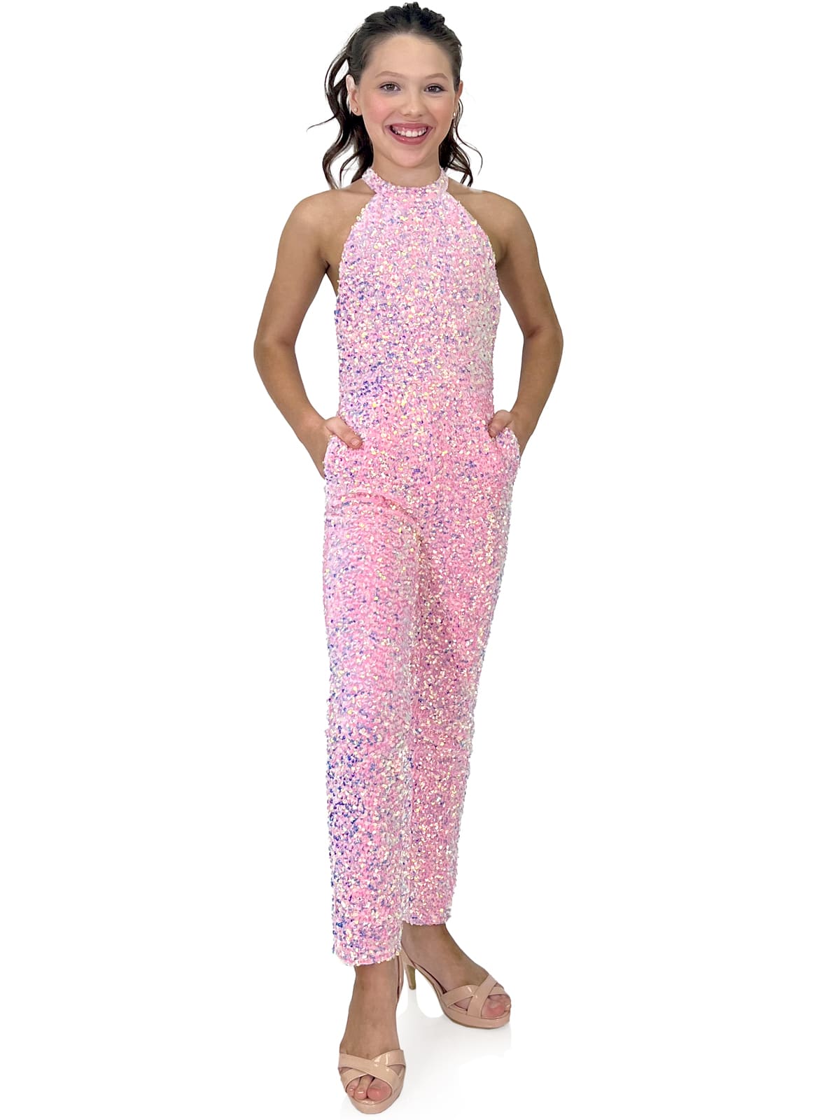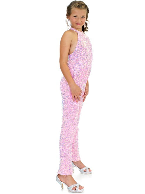 Marc Defang 5022 Long Girls Sequin Pageant Jumpsuit Fun Fashion High Neck