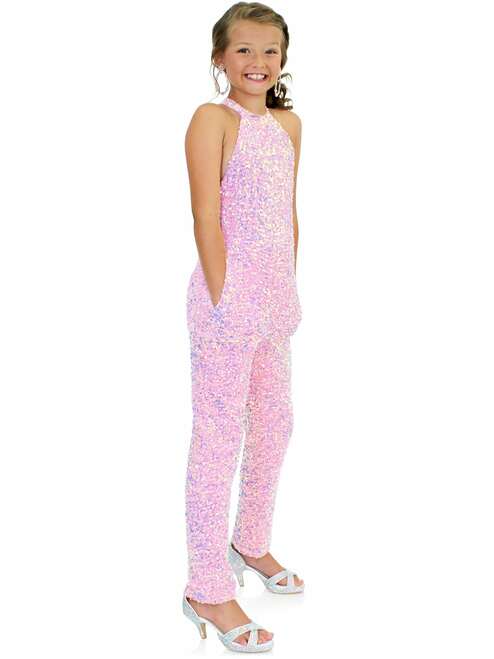 Marc Defang 5022 Long Girls Sequin Pageant Jumpsuit Fun Fashion High Neck