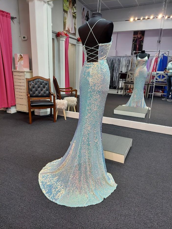 Marc Defang 8056 Size 2 Mint Long Fitted sequin V Neckline Backless Prom Dress Corset Gown