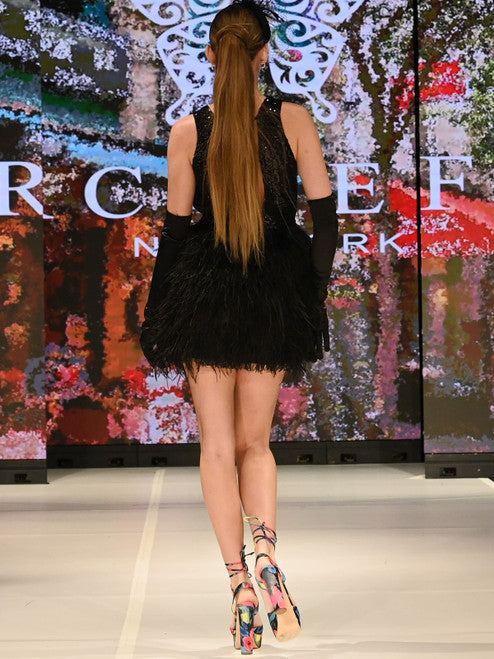 Marc Defang 8203 Short Ostrich Feather Sequin Backless cocktail Dress Formal Pageant
