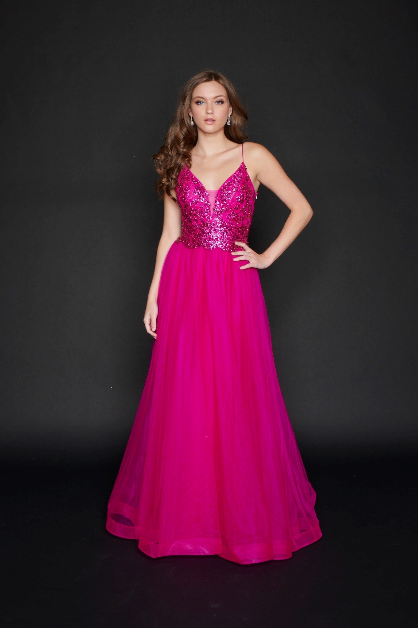 Nina Canacci 1522 Long V neck Pageant Prom dress or Evening Gown Long A Line Glitter Prom Dress Formal Party Gown V Neck