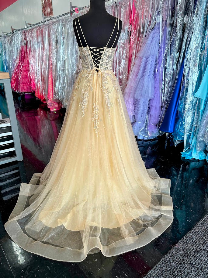 Nina Canacci 1587 Size 4 Champagne Sheer Corset Prom Dress A Line Sequin Scoop neck formal ballgown