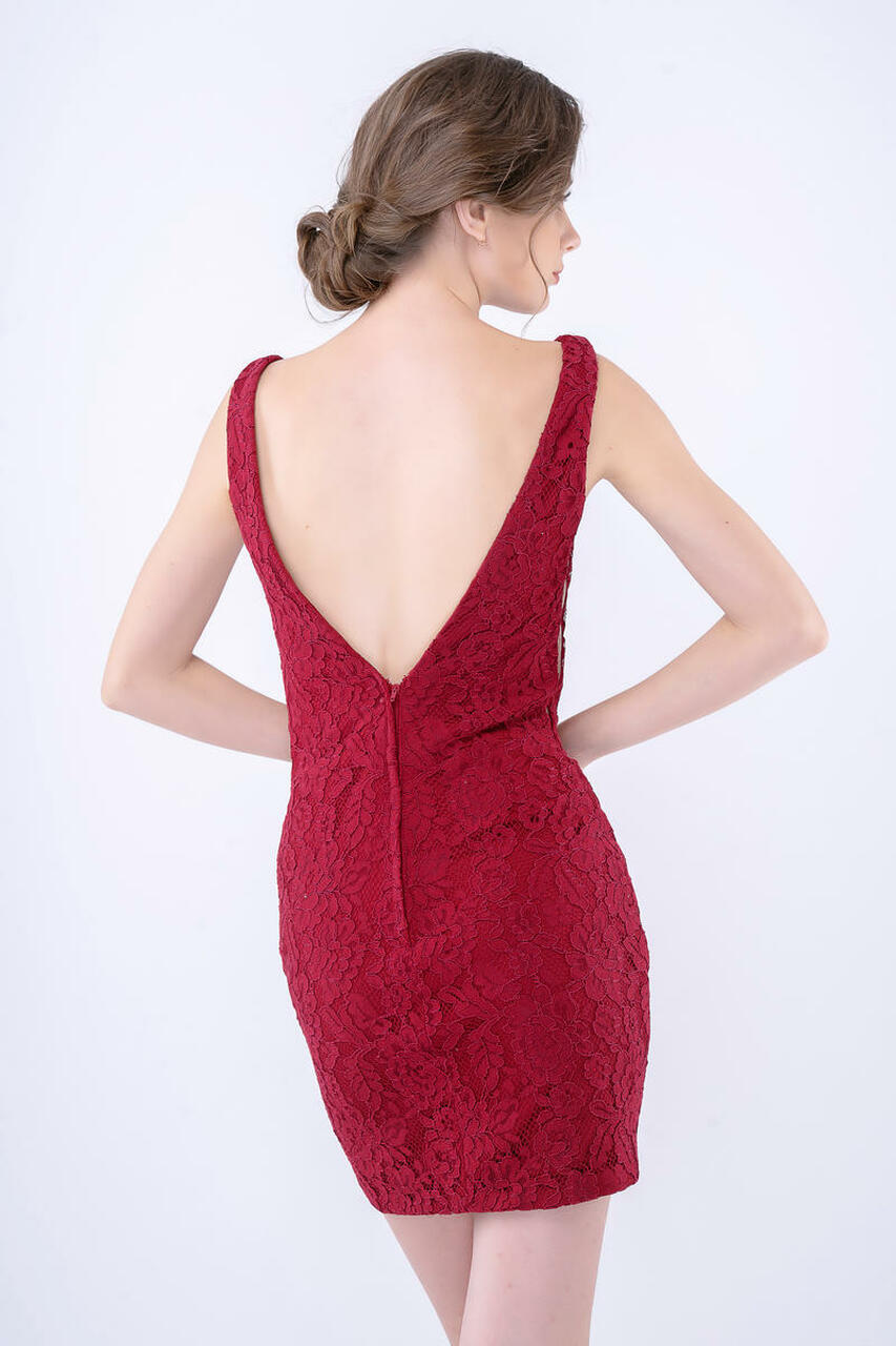 Nina Canacci 266 Size 2, 4, 6 Burgundy, Navy Short Fitted V Neck Formal Lace Cocktail Dress V Neck Sheer Side