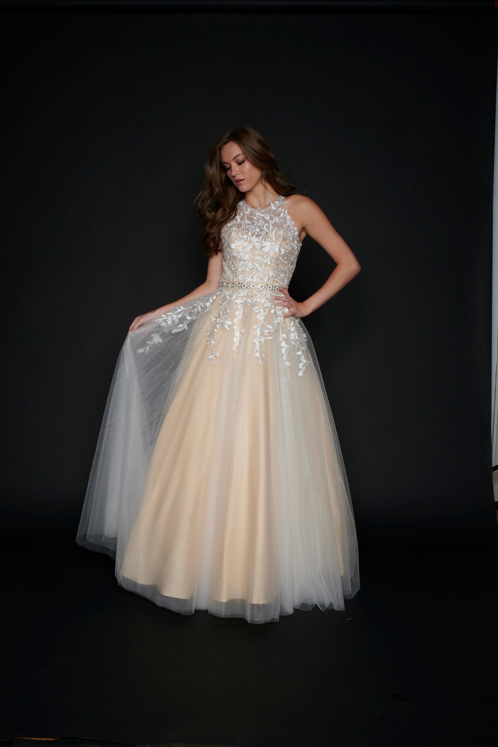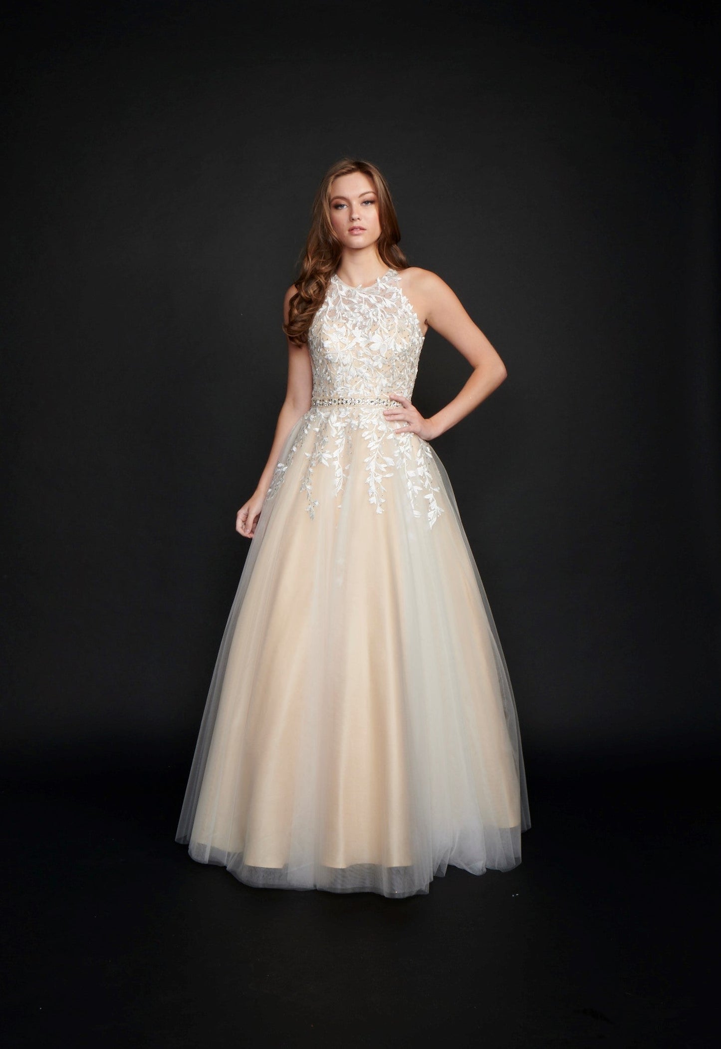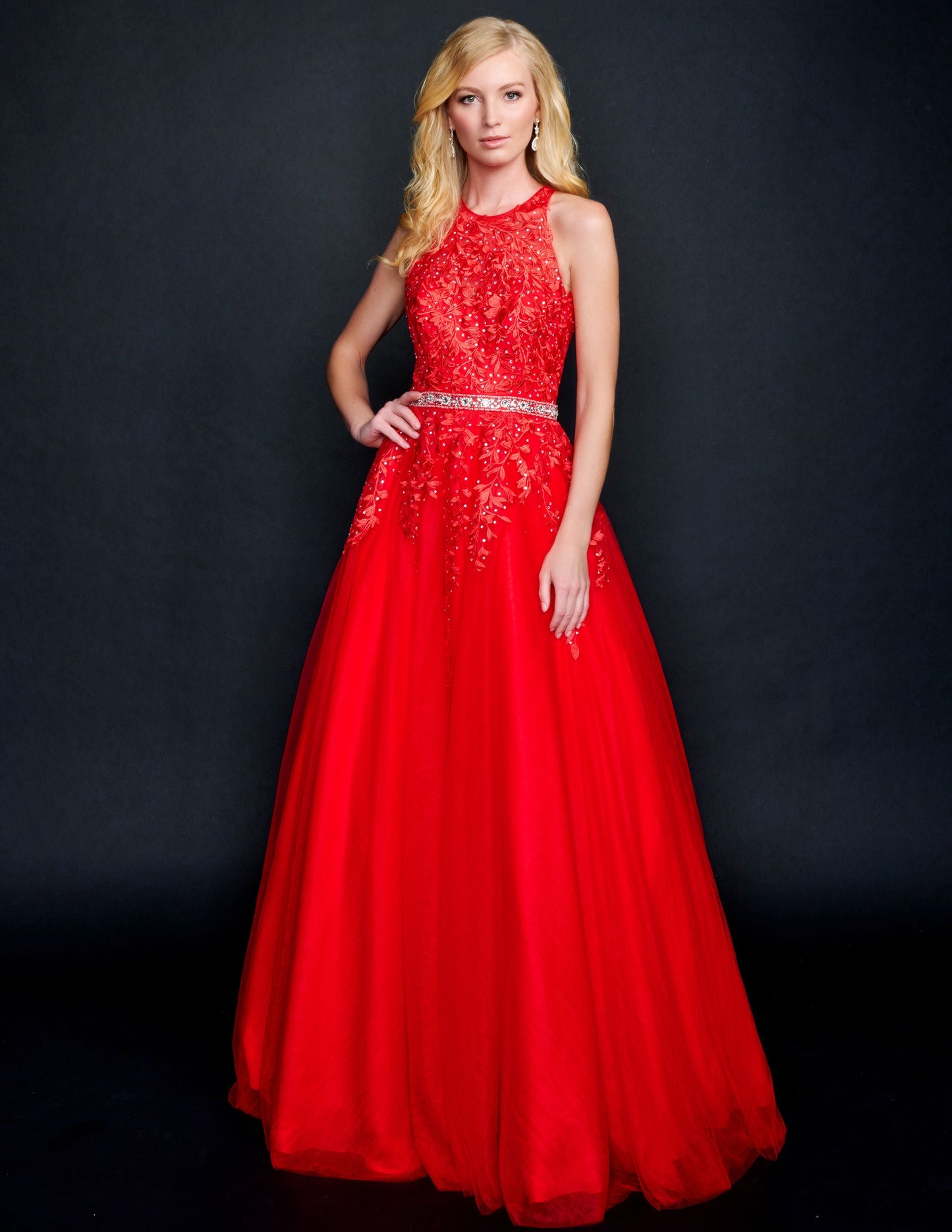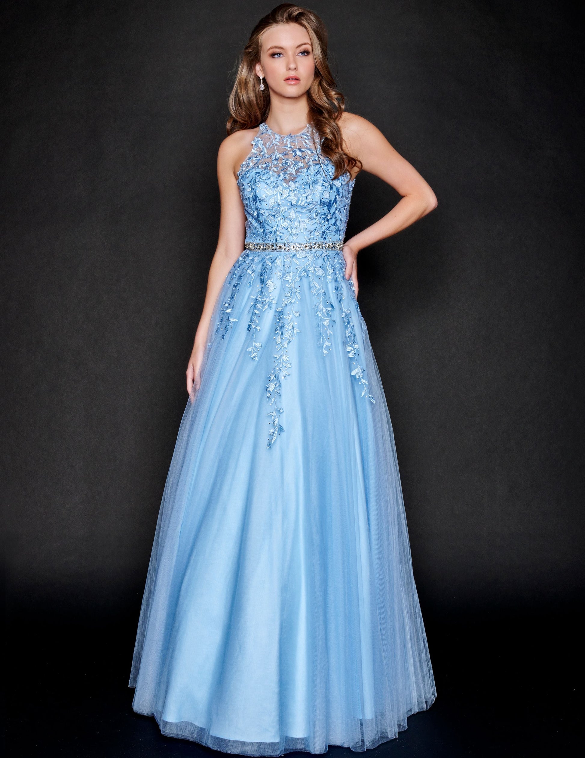 Nina Canacci 3188 Long Lace A Line Ballgown Prom Dress Pageant Gown High Neck Formal