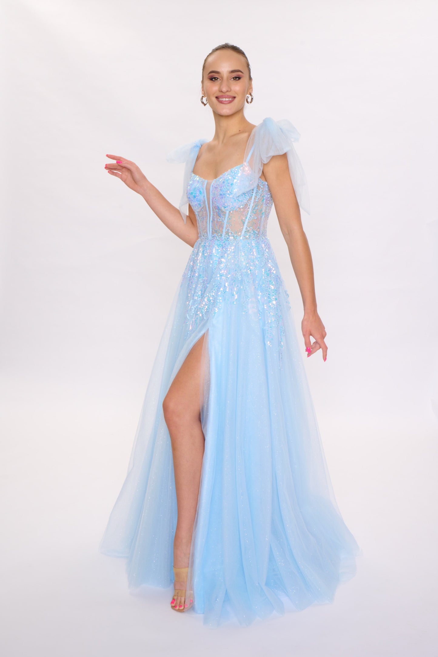 Nina Canacci 3269 Bow Straps Prom Dress Aline Slit Sweetheart Neckline