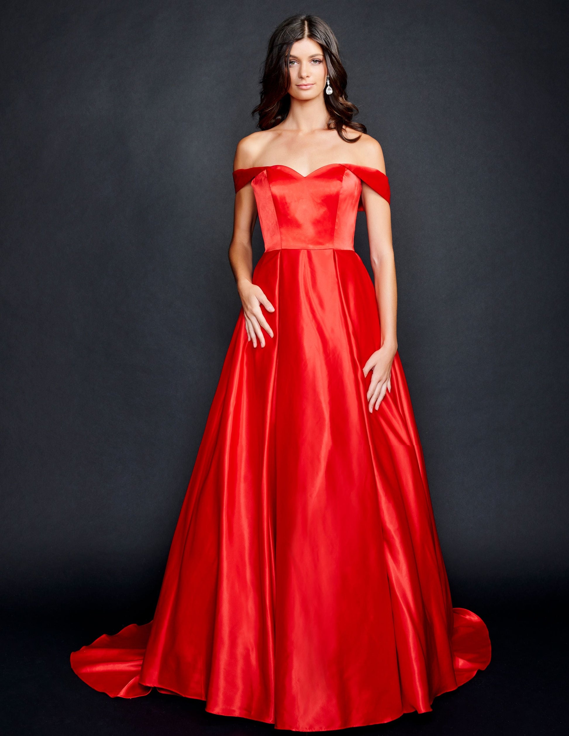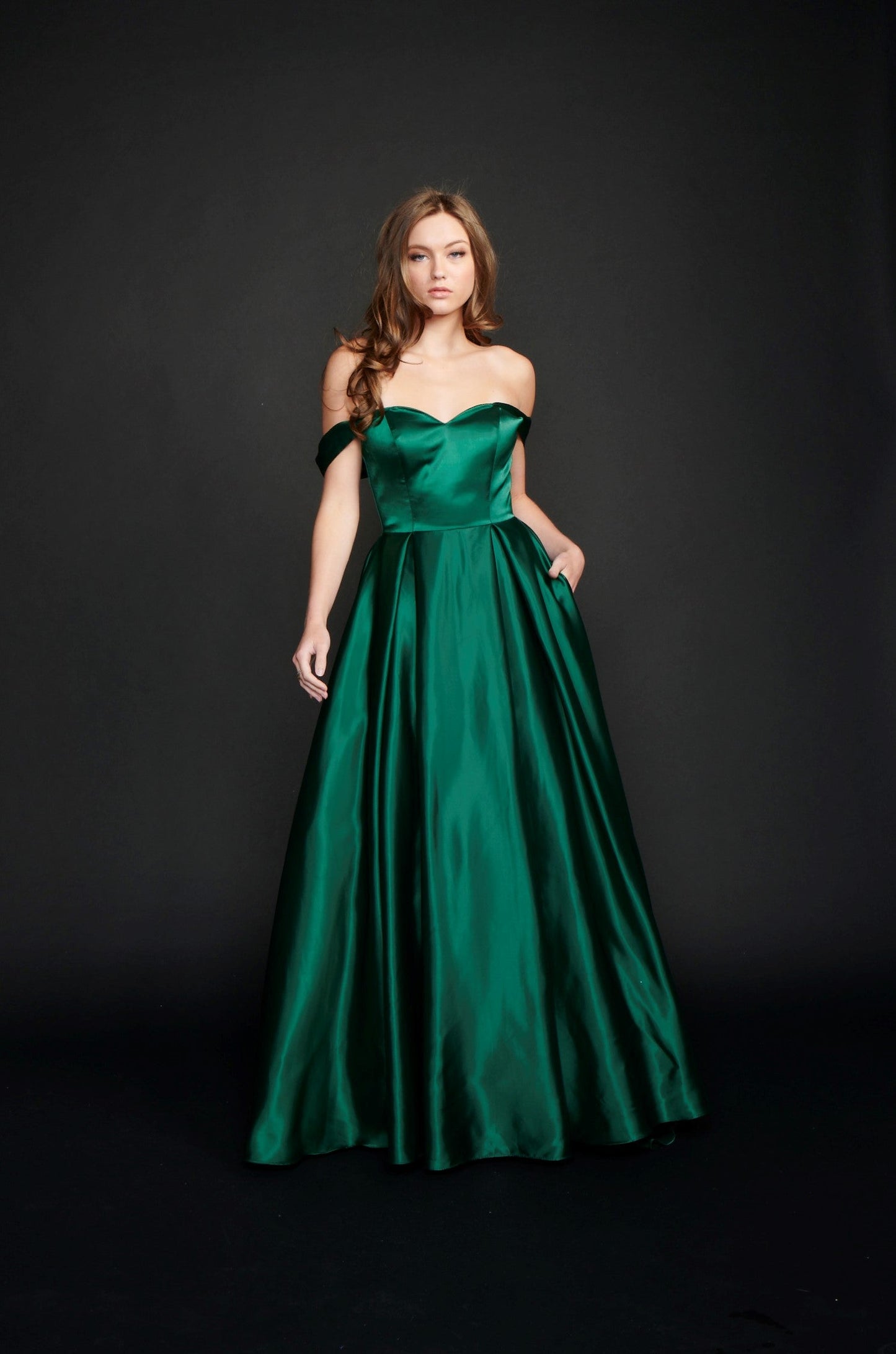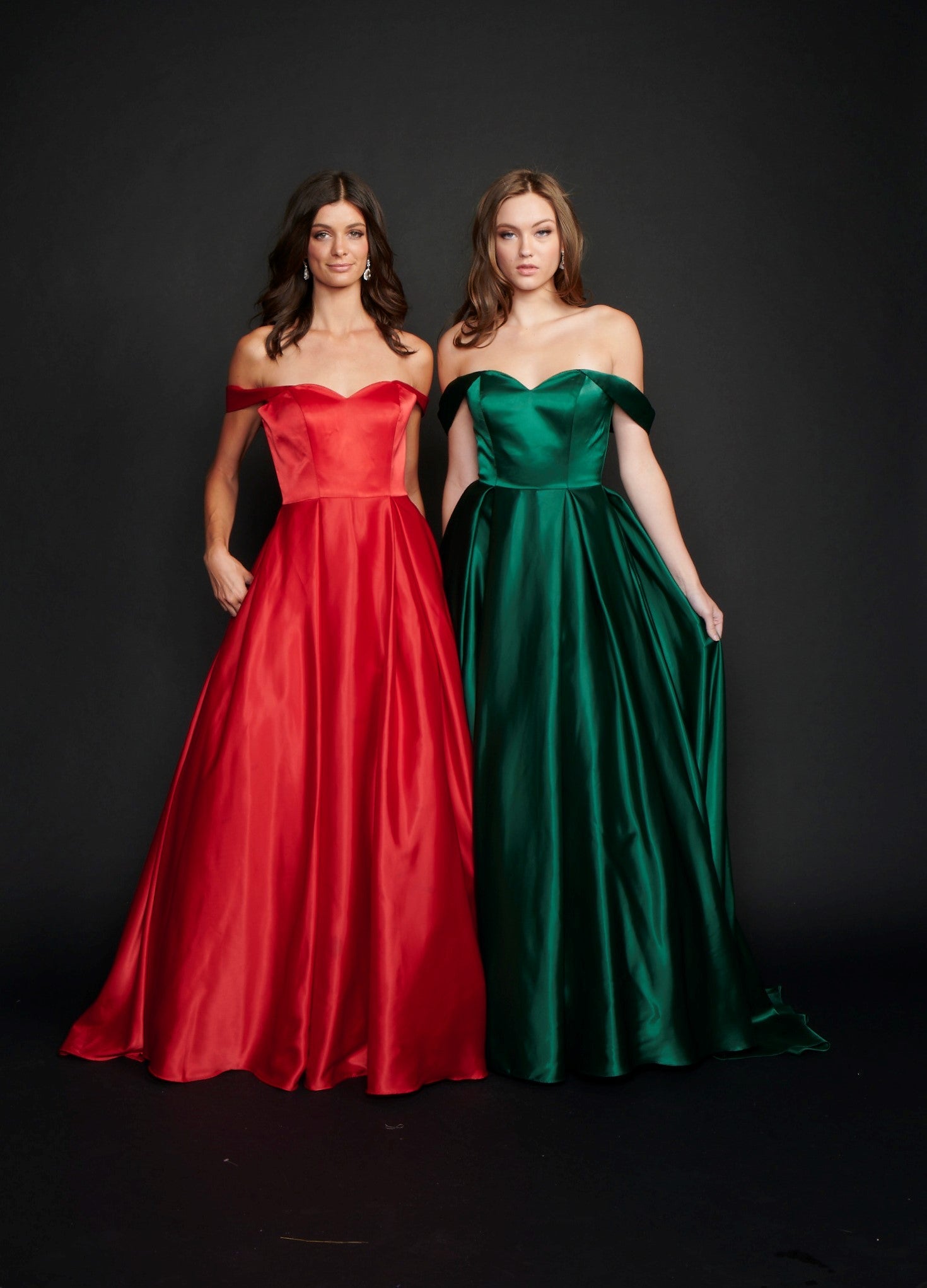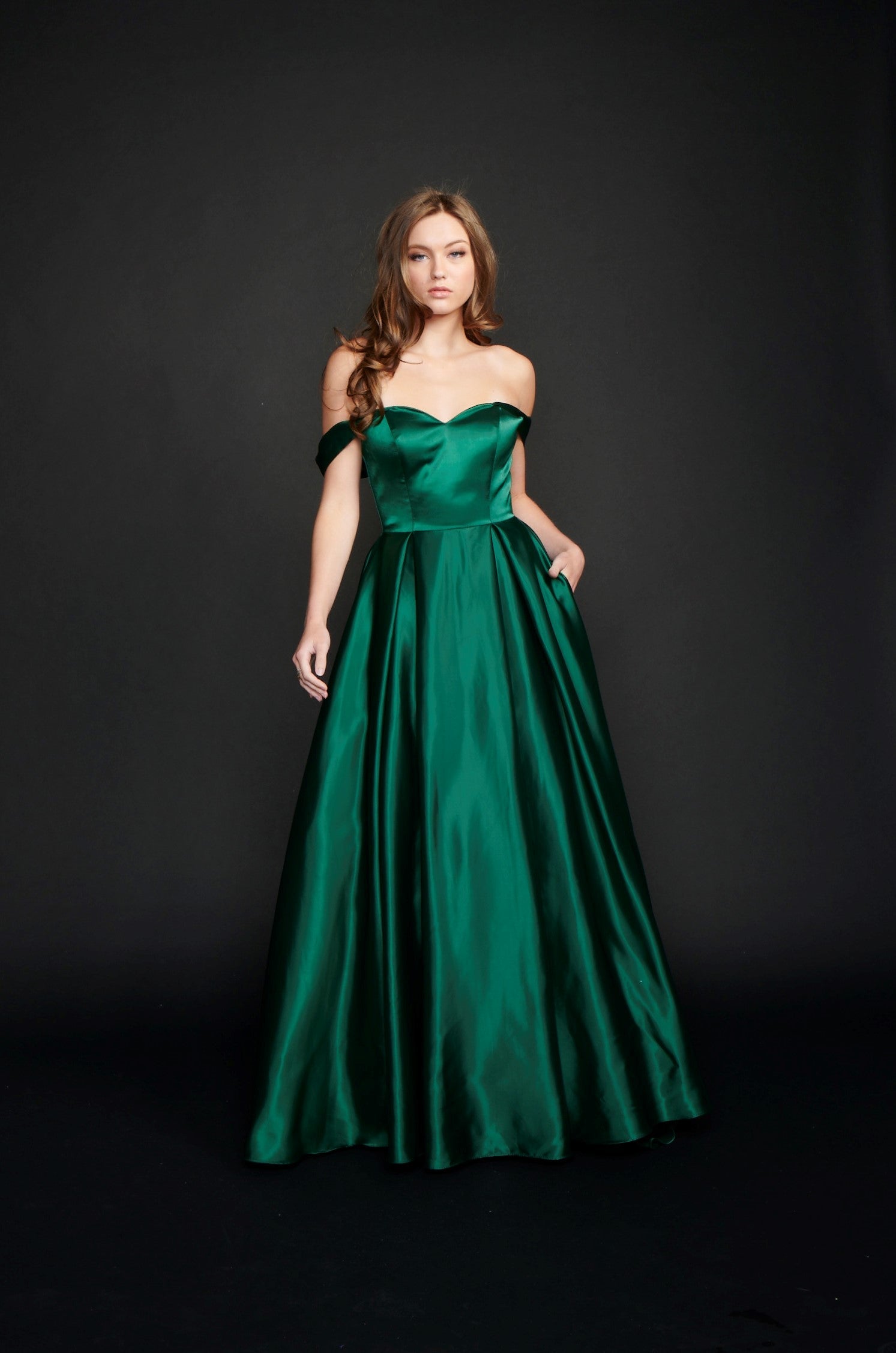Nina Canacci 5214 Long Satin off the shoulder Ballgown Prom Dress Pageant Gown Pockets