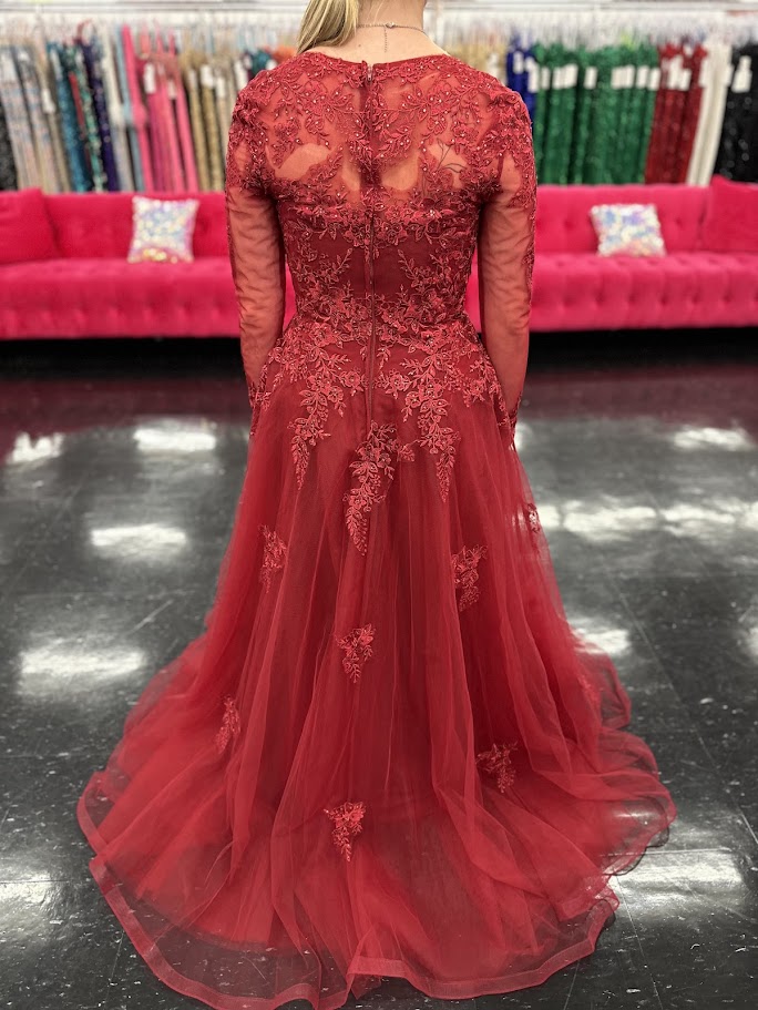 Nina Canacci 5310 Size 4 Burgundy Lace Long Sleeve A Line Dress Formal Mother Of Gown Evening