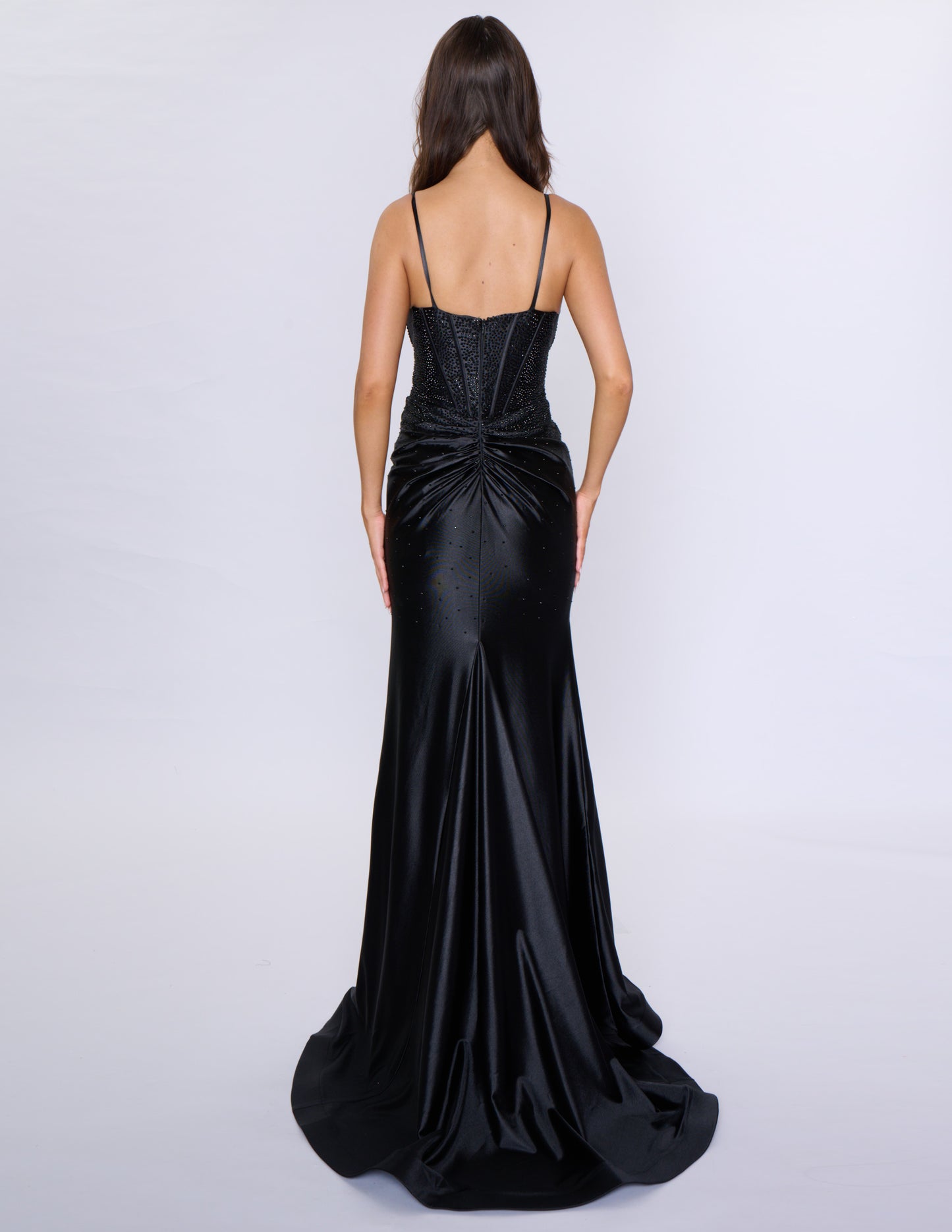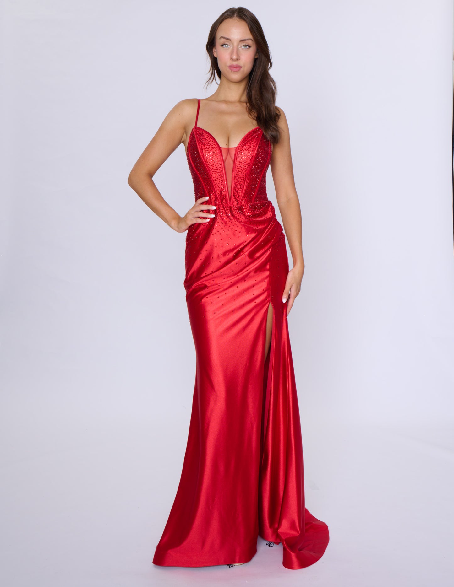 Nina Canacci 6687 Long Fitted Crystal Corset Prom Dress Formal Evening Gown Slit V Neck