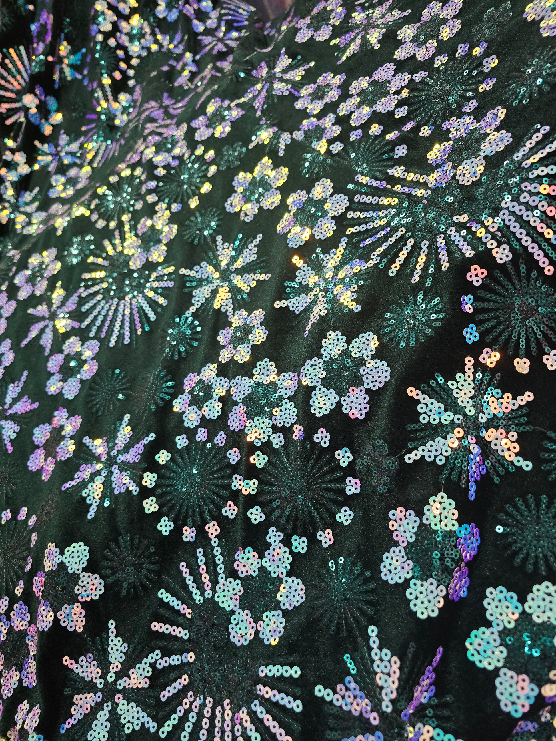 Nina Canacci 8257 Size 4 Emerald Velvet Sequin Prom Dress Mermaid Sheer Formal Gown V Neck
