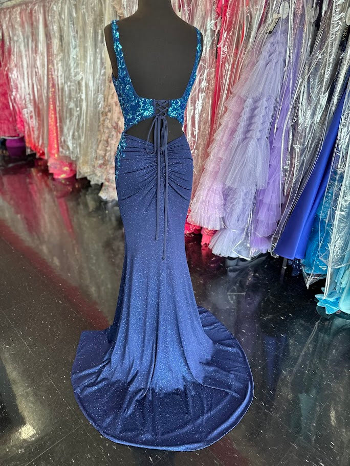Nina Canacci 9877 Size 4 Midnight Fitted Sequin Shimmer Backless Prom Dress Corset Scoop Neck Gown Slit