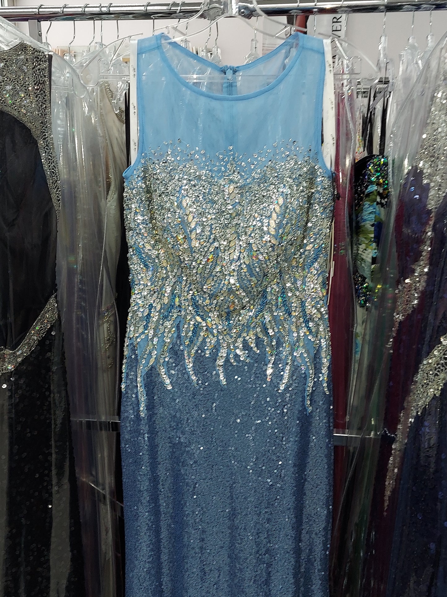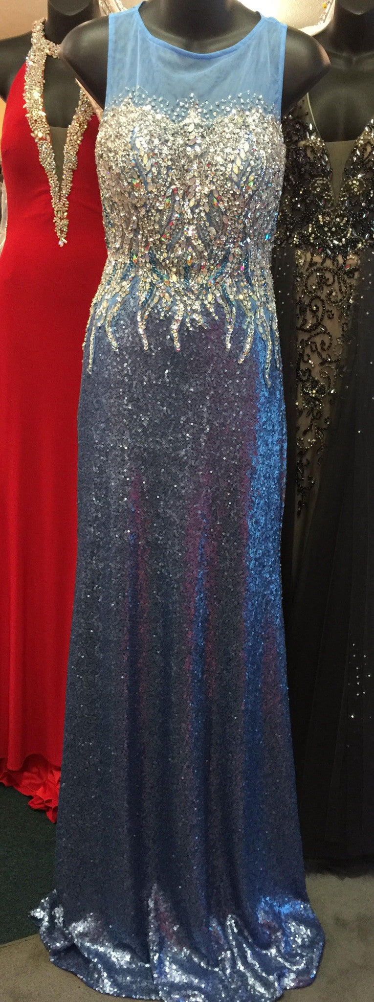 Precious Formals L46814 Size 0 Blue Sequin High Neck prom dress Formal Evening Pageant Gown