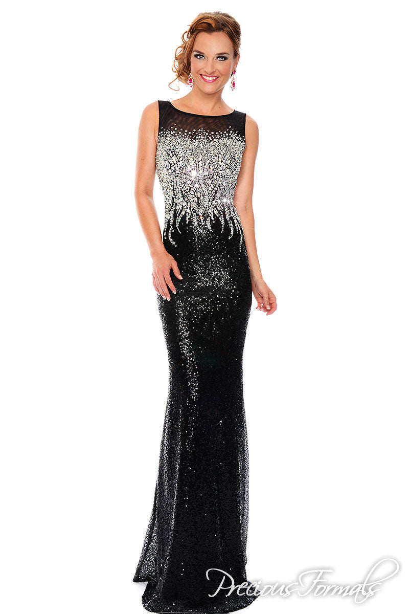 Precious Formals L46814 in English Blue size 0 sequin sleeveless long prom dress evening gown with a crystal bodice, illusion sweetheart neckline.