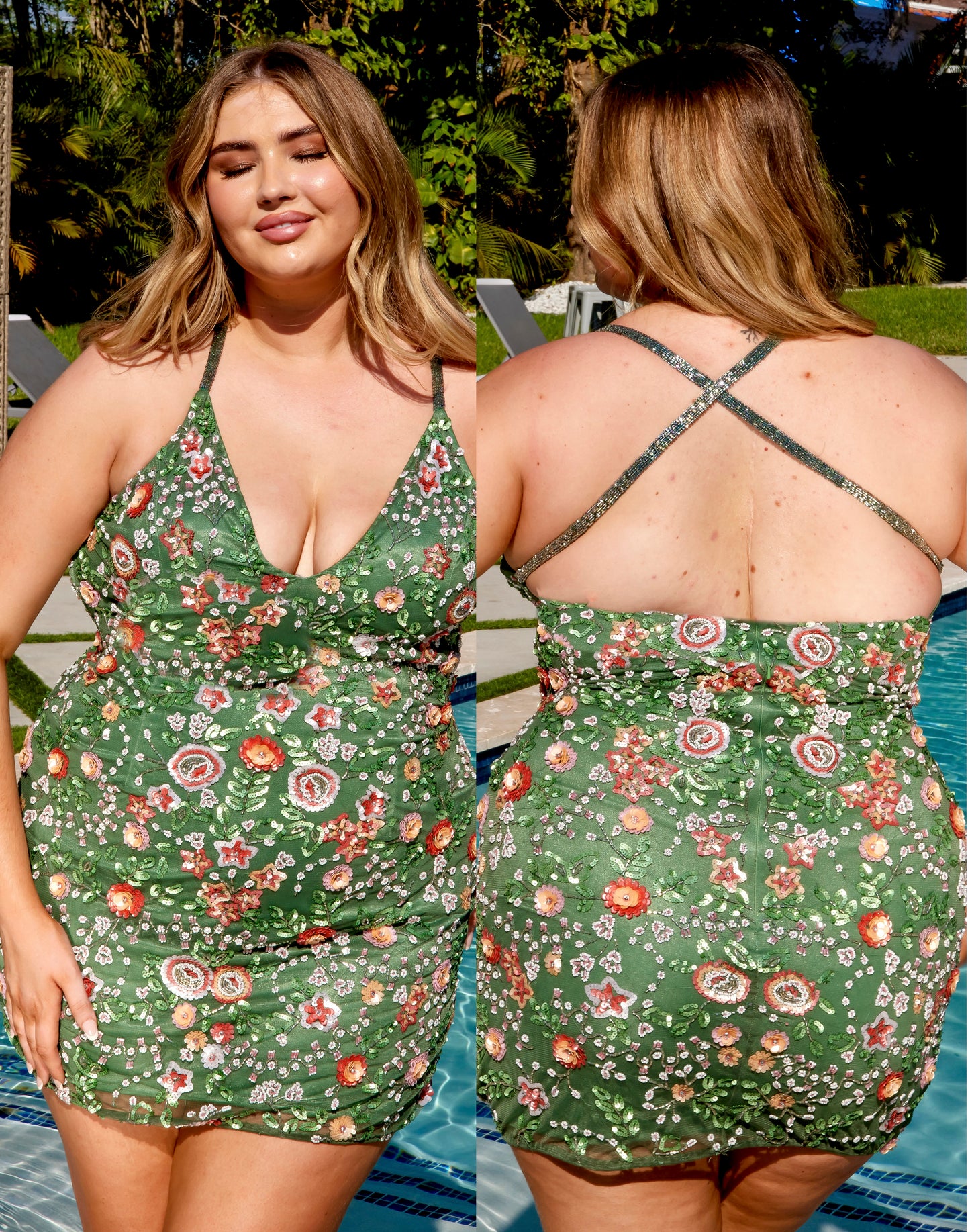 Primavera Couture 14034 Curvy Cocktail Dress Fully Embroidered Floral Print V-Neck Cross Back Curvy Short Homecoming Cocktail Dress. Look stunning in this elegant Primavera Couture 14034 V-neck dress. Crafted with embroidered floral print, sheer fabric and a cross-back design, this fitted dress is perfect for homecoming or cocktail events. With the right accessories, you will shine all night long.