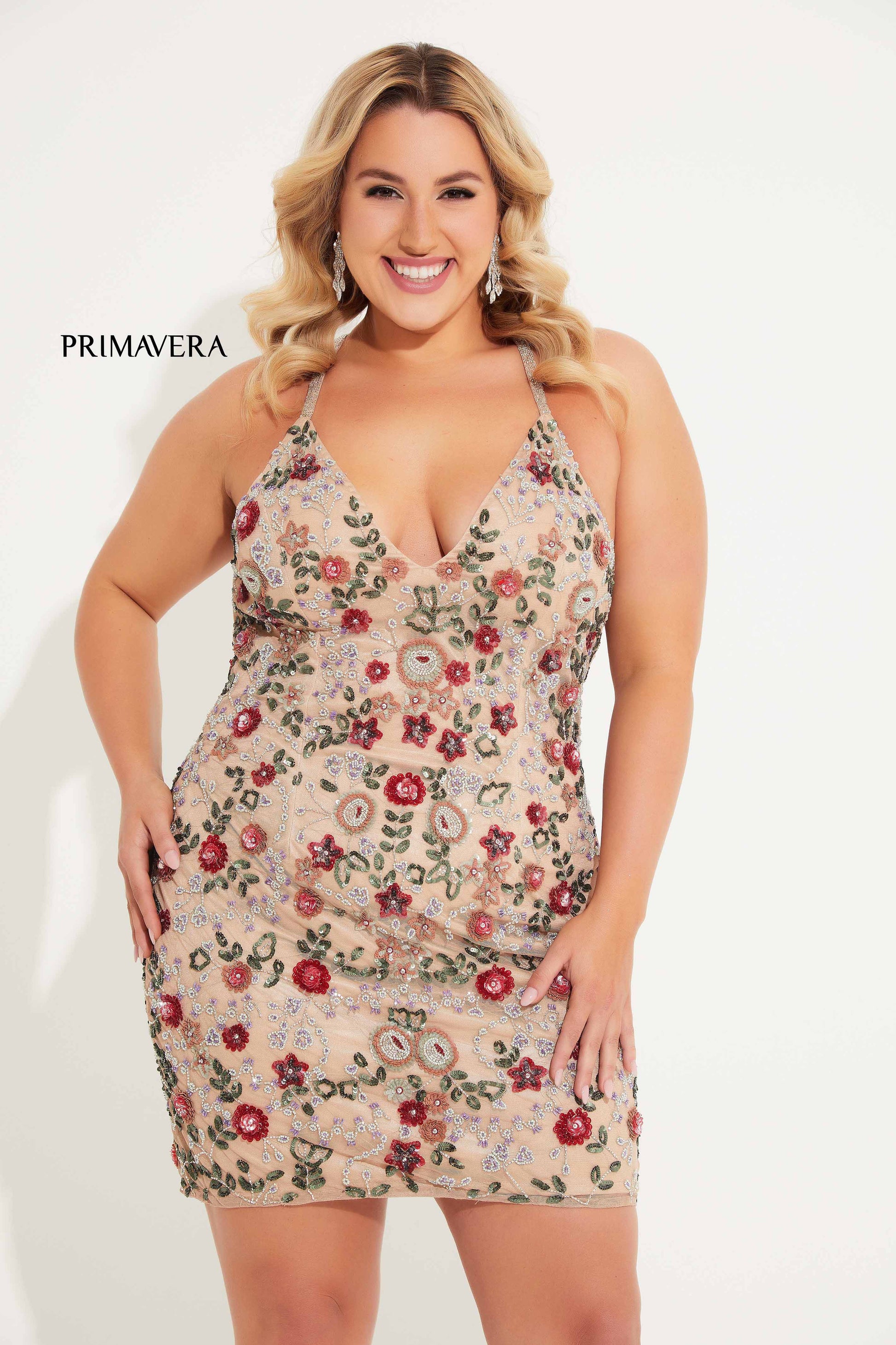 Show off your curves in style with the Primavera Couture 14060 cocktail dress! With a flattering V neckline and eye-catching design, you'll be the center of attention. Perfect for any occasion, this dress combines elegance and playfulness for a look that's uniquely you. (Warning: may cause excessive compliments.)