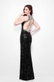Primavera Couture 1572 is a high neckline outlined in illusion crystal and bead work. circle cutout open back with slit in skirt, backless halter sleeve. sequin long prom dress in stock Prom Dress Pageant Gown Evening gown