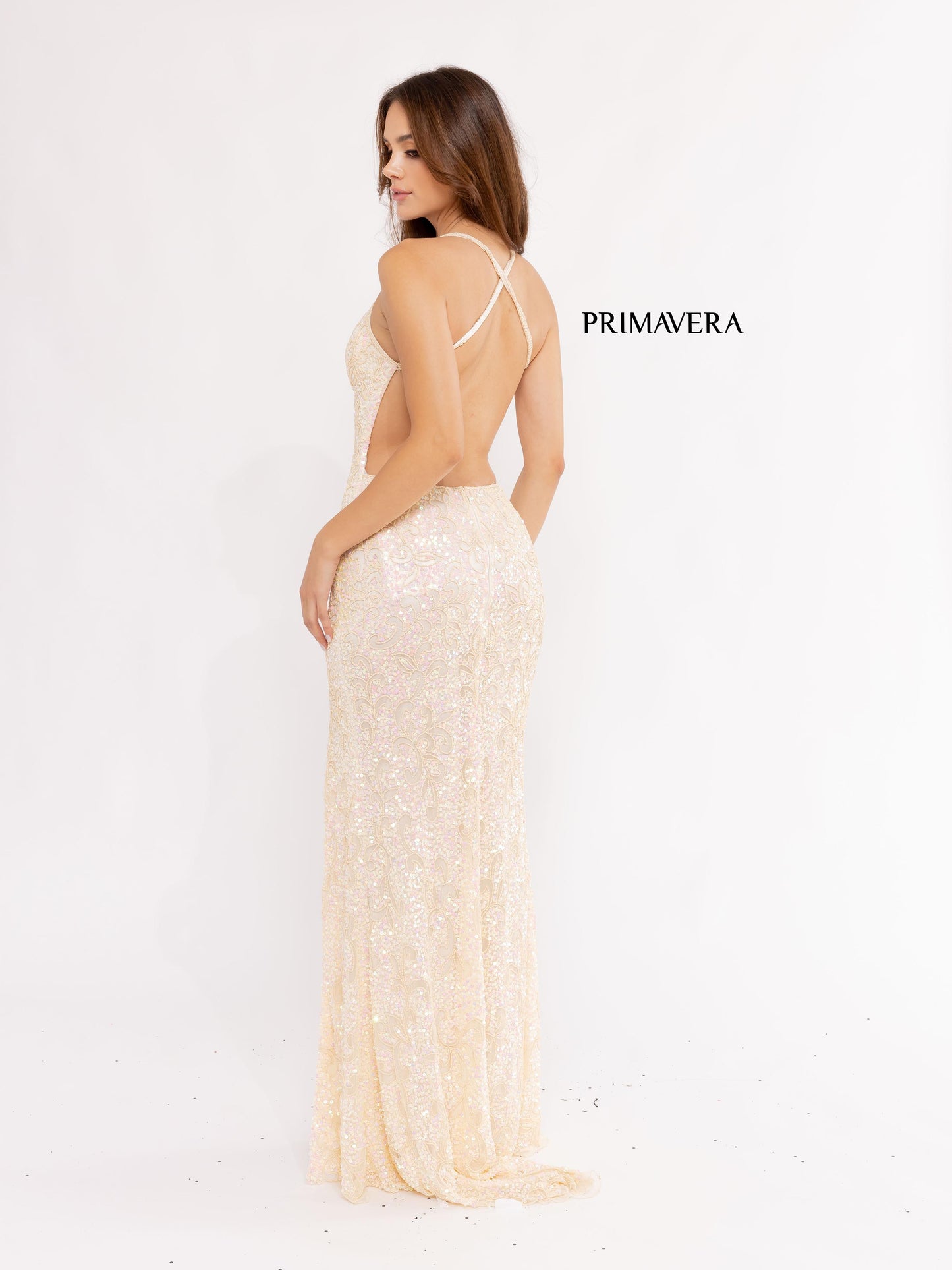 Primavera Couture 3295 Prom Dress V Neckline Sequins Backless Slit Formal Evening Gown
