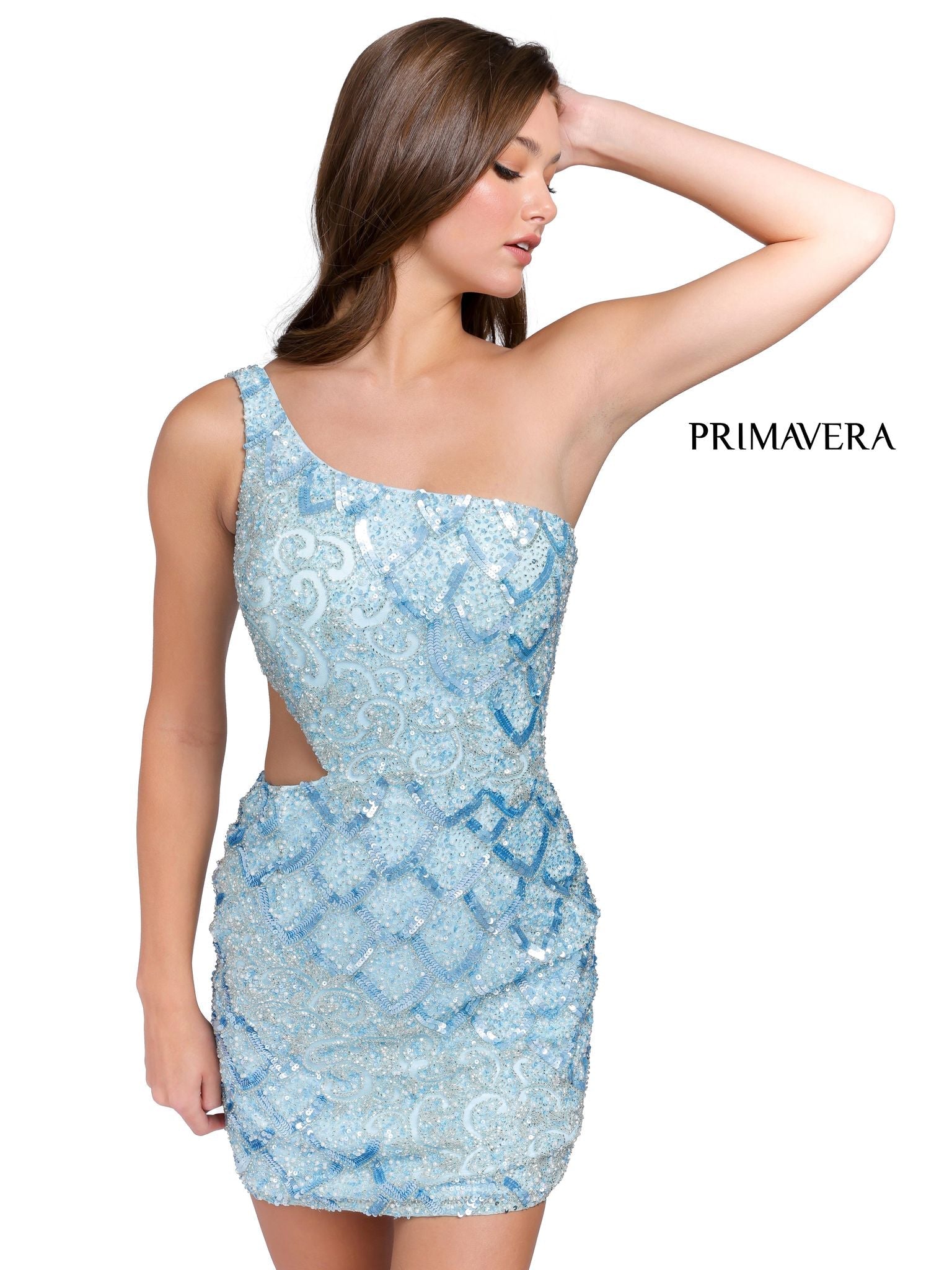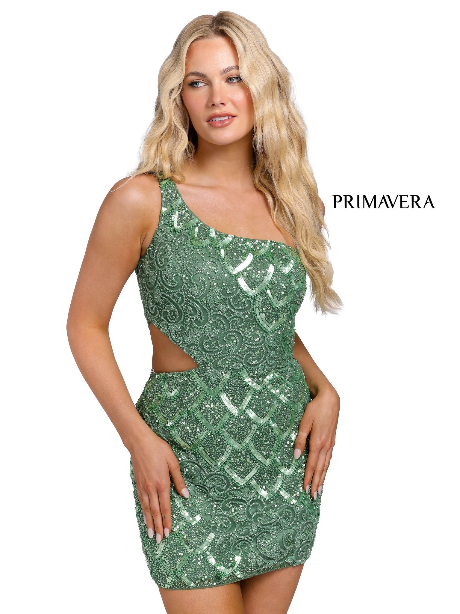 Primavera Couture 3504 Cocktail Dress One shoulder sequin beaded short dress