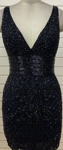 Primavera Couture 3514 Raspberry V neckline wide straps high V back embellished waist short sequin cocktail dress homecoming dress reception dress. Hand beaded - Liquid Beading