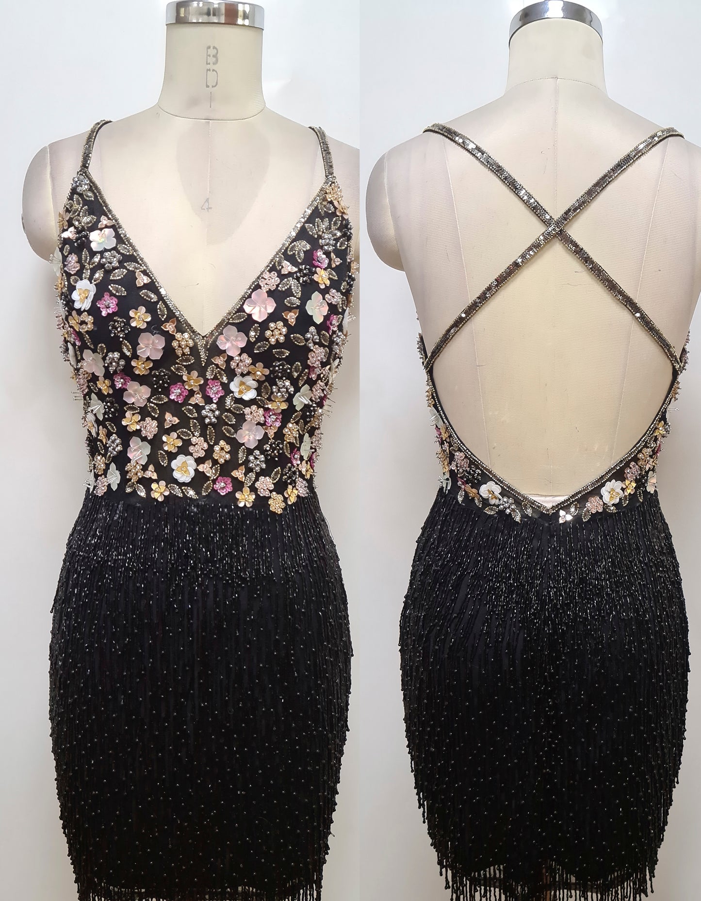Primavera Couture 4044 Floral 3D Embellished Bodice Fringe Bottom Cross Back Homecoming Cocktail Dress. This luxurious Primavera Couture 4044 Cocktail Dress offers a sophisticated look with its intricate floral 3D embellished bodice and cross back. The on-trend fringe bottom adds a hint of glamour to this evening dress, making it an ideal choice for homecoming celebrations.