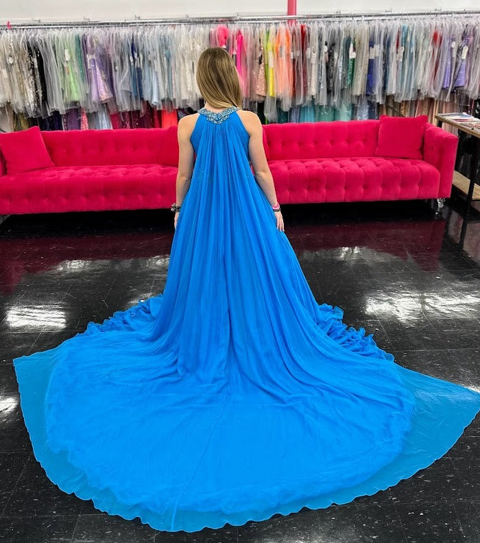 Samantha Blake 1102 Size 14 Turquoise Girls Pageant Dress A Line Crystal Cape Chiffon A Line Gown Train