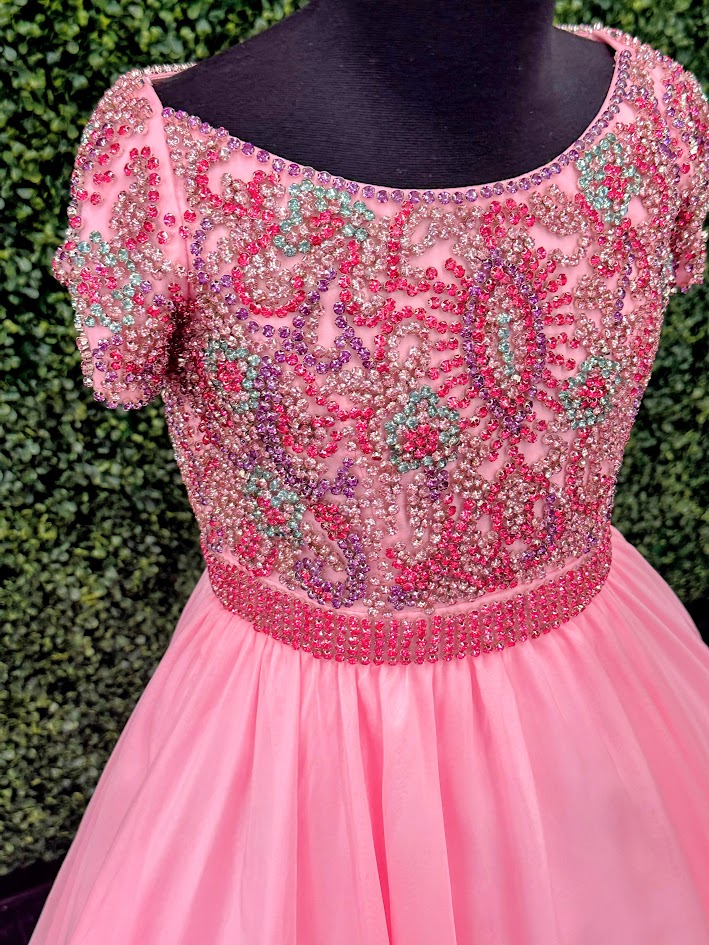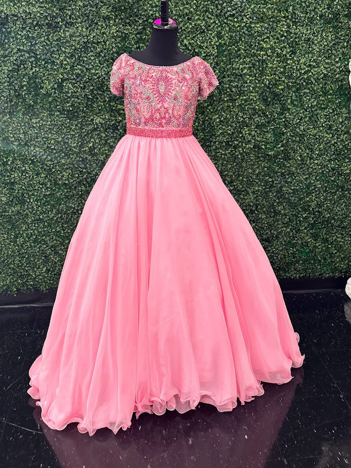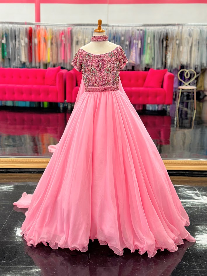 Samantha Blake 1113 Girls Pageant Dress Crystal Cape Choker A Line Ballgown Cap Sleeve