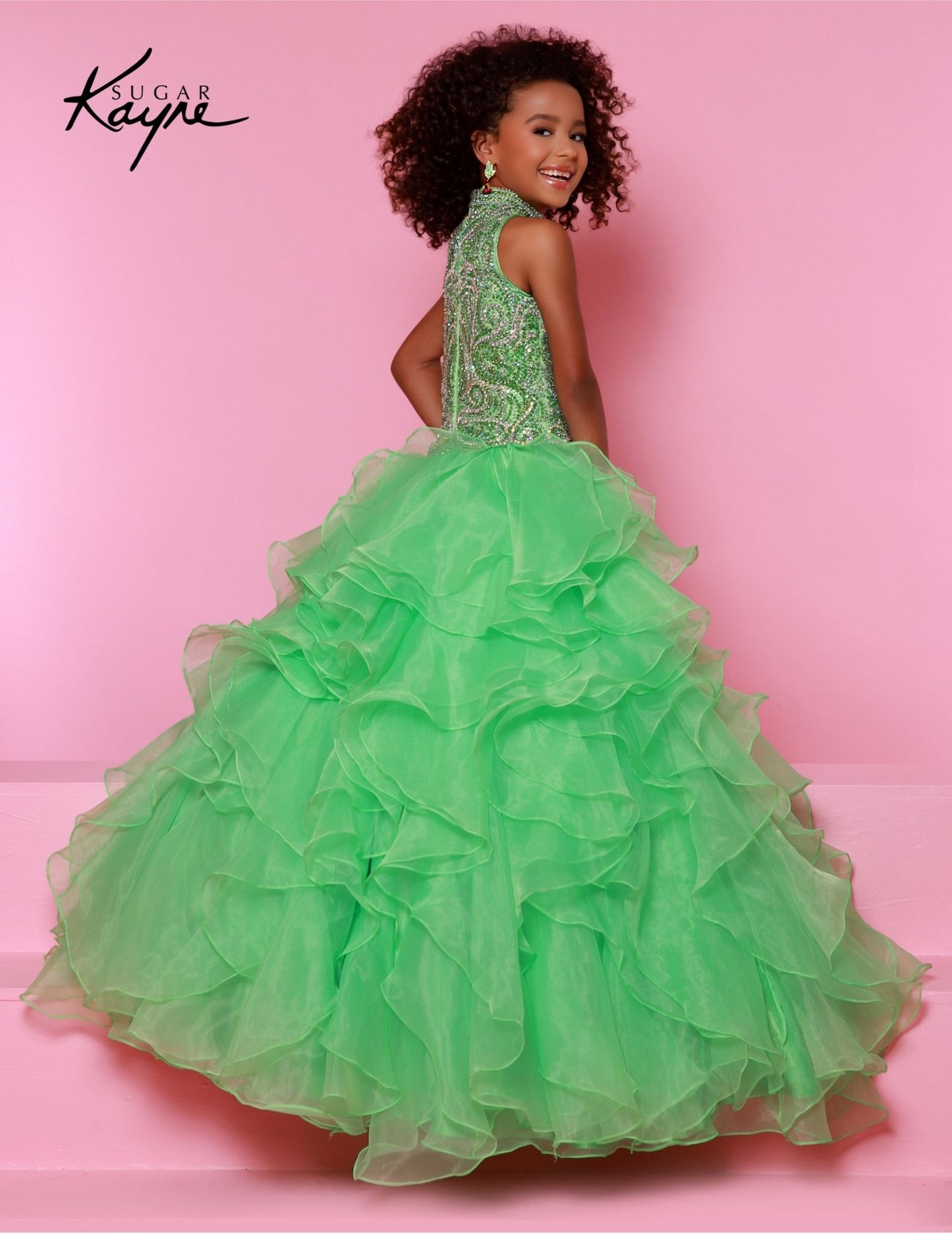 Sugar Kayne C326 Girls Preteens Pageant Dress Ruffled Long Skirt High Neckline Crystal Bodice Sleeveless