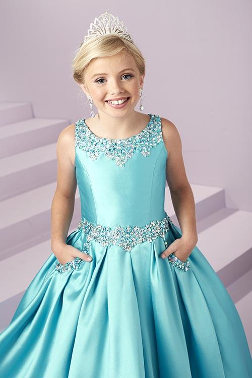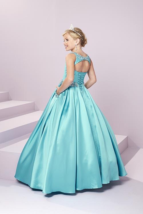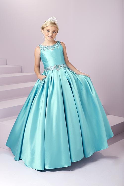Tiffany Princess 13485 Girls Pageant Dress Mikado A Line Beaded Pockets Open Back Ball Gown