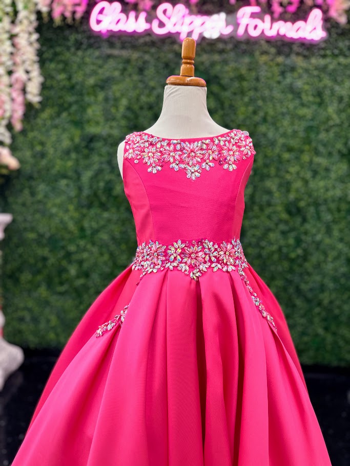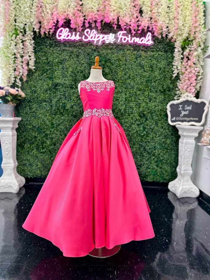 Expertly designed for the modern princess, the Tiffany Princess 13485 Girls Pageant Dress is a stunning Mikado A Line masterpiece. Embellished with intricate beadwork and featuring convenient pockets, this open back ball gown will make any young lady feel like royalty. A beaded scoop neckline and waistband showcase this adorable gown. Complete with a box pleated, a-line mikado skirt with front Pockets, and an open back with lace-up.
