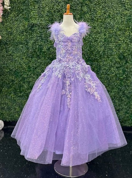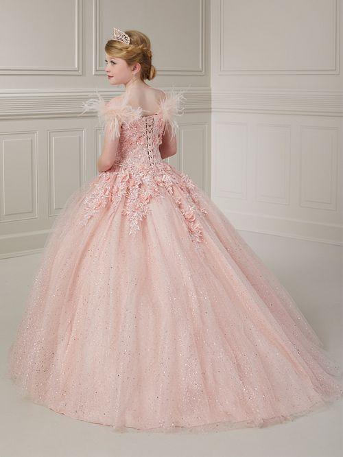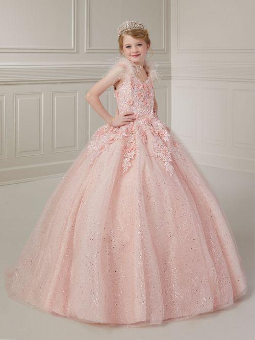 Tiffany Princess 13727 Girls Pageant Dress Feather Lace Ball Gown Shimmer Sequin Corset