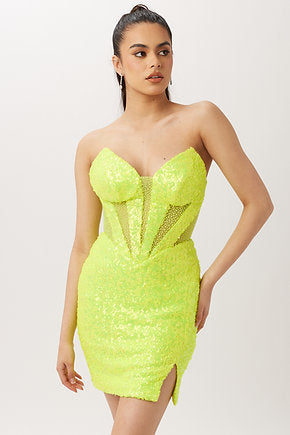 VIENNA Prom 60100 Strapless Silhouette Sequin Slit V-Neck Cut Out Bodice Cocktail Homecoming Dress. Feel elegant and glamorous in the Vienna 60100 Strapless Dress. It features a V-neck cut-out bodice adorned with sparkling sequins, a slit design, and a graceful silhouette to flatter any body type. Perfect for any special occasion, this dress is sure to make you stand out in the crowd.