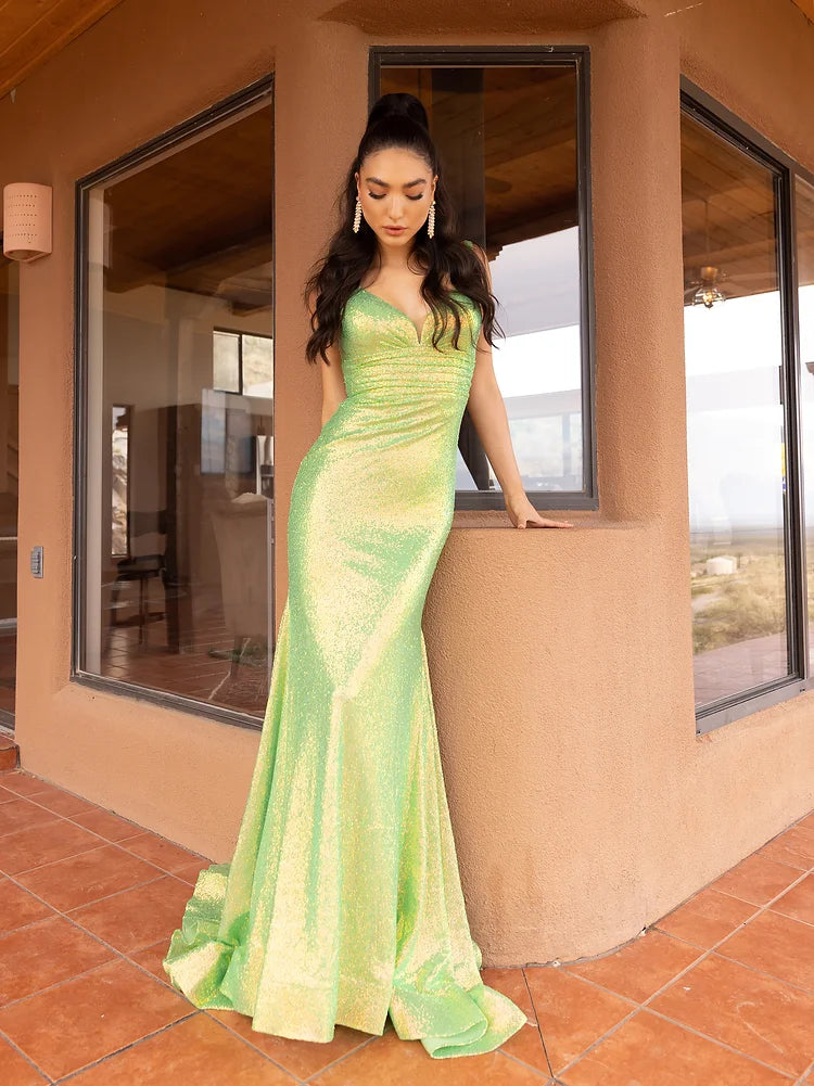 Vienna Prom Dress 8850 Long fitted Sequin Backless Corset Prom Dress Formal Gown Pageant Vienna Prom Dress 8850 Corset Back Prom Dress with V Neckline and Ruched High Waistline