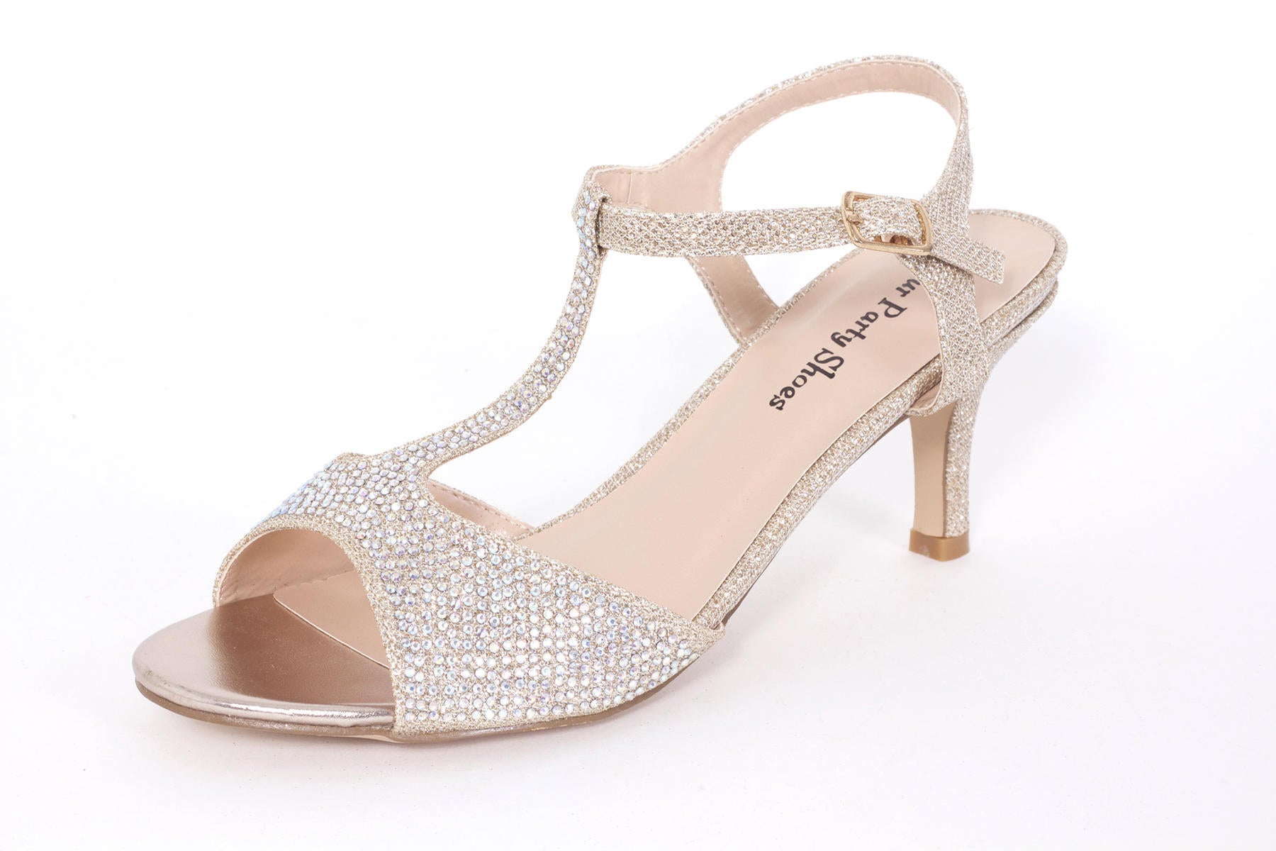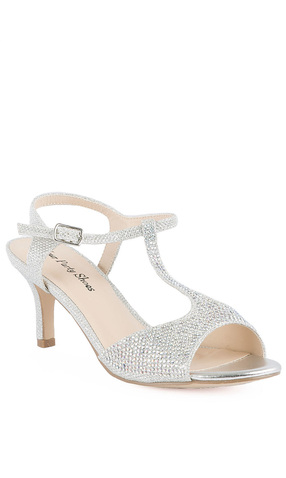 Your Party Shoes Avery Open Toe Silver Short Heel Crystal Embellished Prom Pageant
