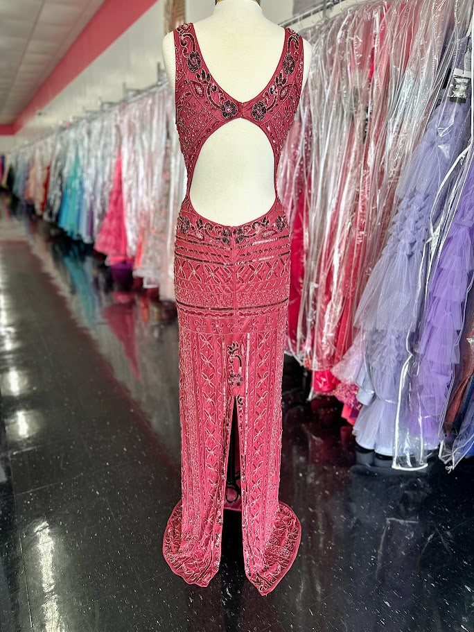 Zasa Chic 2012 Size 14 Sorbet Long Beaded Backless Formal Dress V Neck Gown